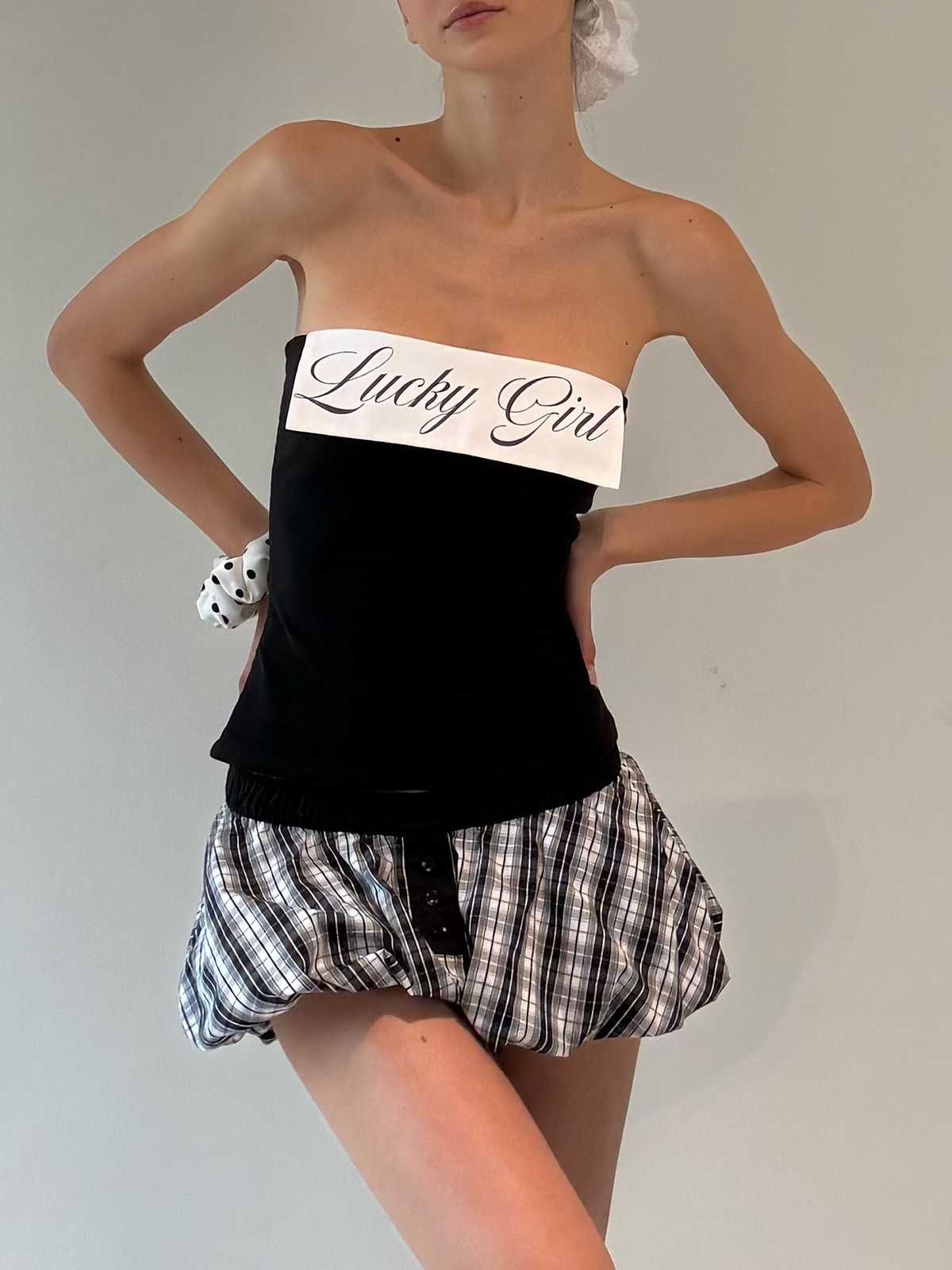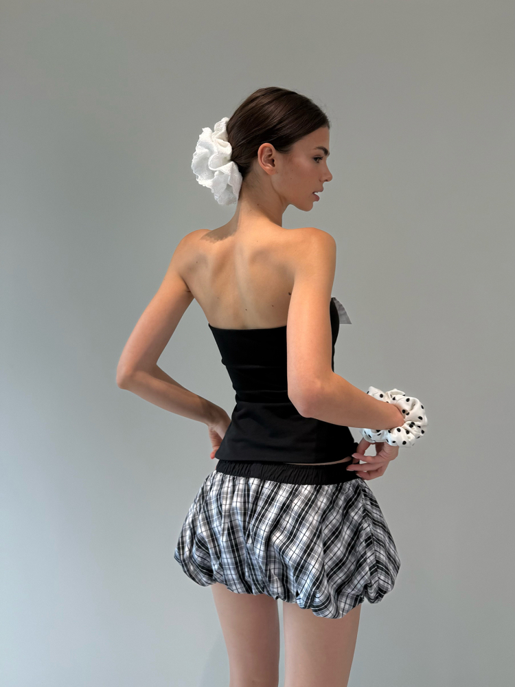 Step into the spotlight with our Stylish Split Lapel Strapless Top, perfectly paired with a waist-defined design and a playful plaid bubble skirt. This quirky Y2K fashion outfit is tailored for trendy girls who love to make a statement while enjoying a flattering fit. The unique combination of the structured top and voluminous skirt offers both comfort and style, making it ideal for parties or casual outings. Elevate your wardrobe with this standout ensemble—add it to your cart today!