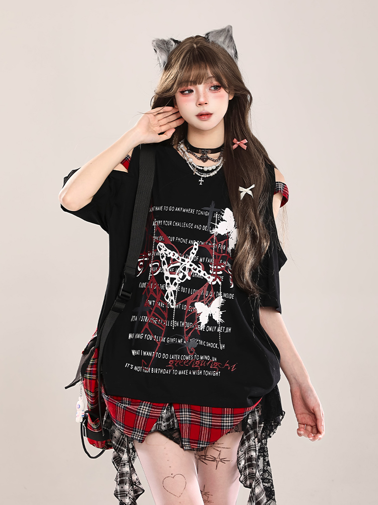 Concert Outfit Summer Butterfly Print Short Sleeve T- Shir – Concert Outfit