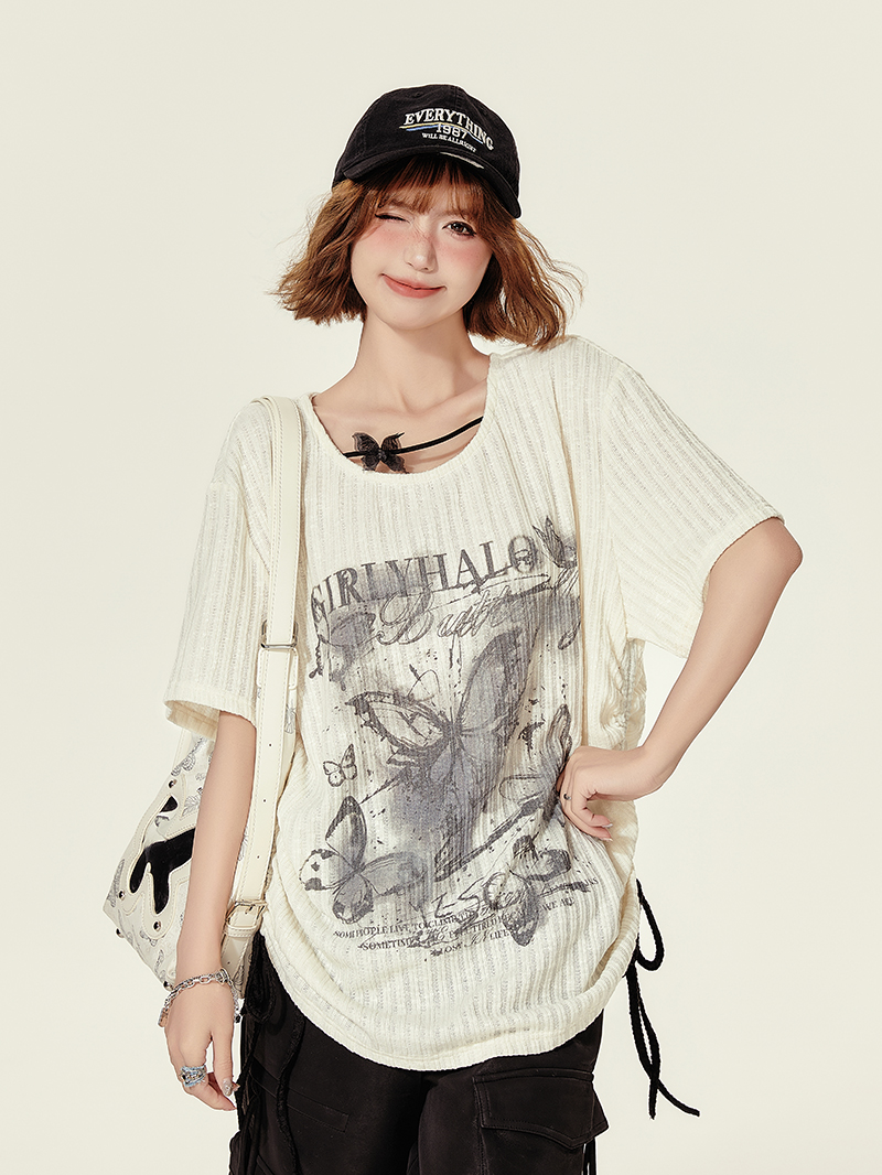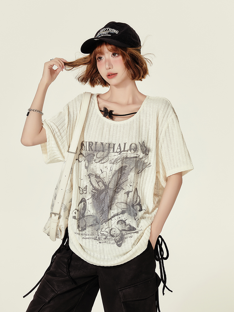 Elevate your summer wardrobe with our Summer Butterfly Print U-Neck Short Sleeve T-Shirt for Women. This stylish top features a flattering U-neck design and a loose, slimming fit that effortlessly complements any body type. The vibrant butterfly print adds a playful touch, making it perfect for casual outings or a day at the park. Crafted from soft, breathable fabric, it ensures comfort while keeping you chic. Don’t miss out on this must-have fashion piece—add it to your cart today and embrace your spicy girl style!