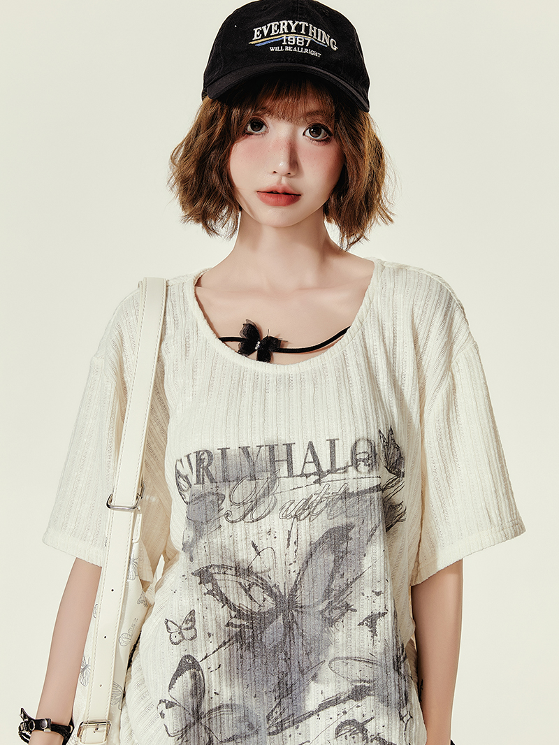 Concert Outfit Summer Butterfly Print U Neck Short Sleeve T- shirt Women Loose Top High-quality product featuring concert outfit ideas, summer fits, casual summer outfits and more. Modern design that fits the latest trends. Premium materials ensure durability and comfort. Order now for special offers! Product designed with attention to every detail. Suitable for all occasions and personal styles.
