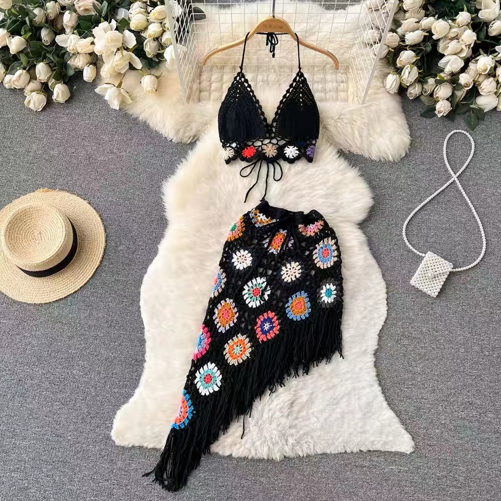 Elevate your summer style with our stunning Summer Halter Neck Two-Piece Set for Women. This chic outfit features a backless design and a high-waisted skirt with a unique hollow-out detail and playful tassels, perfect for making a statement on your beach vacation. Enjoy the comfortable fit while soaking up the sun and turning heads wherever you go. Don’t miss out on this must-have look—add to your cart today!