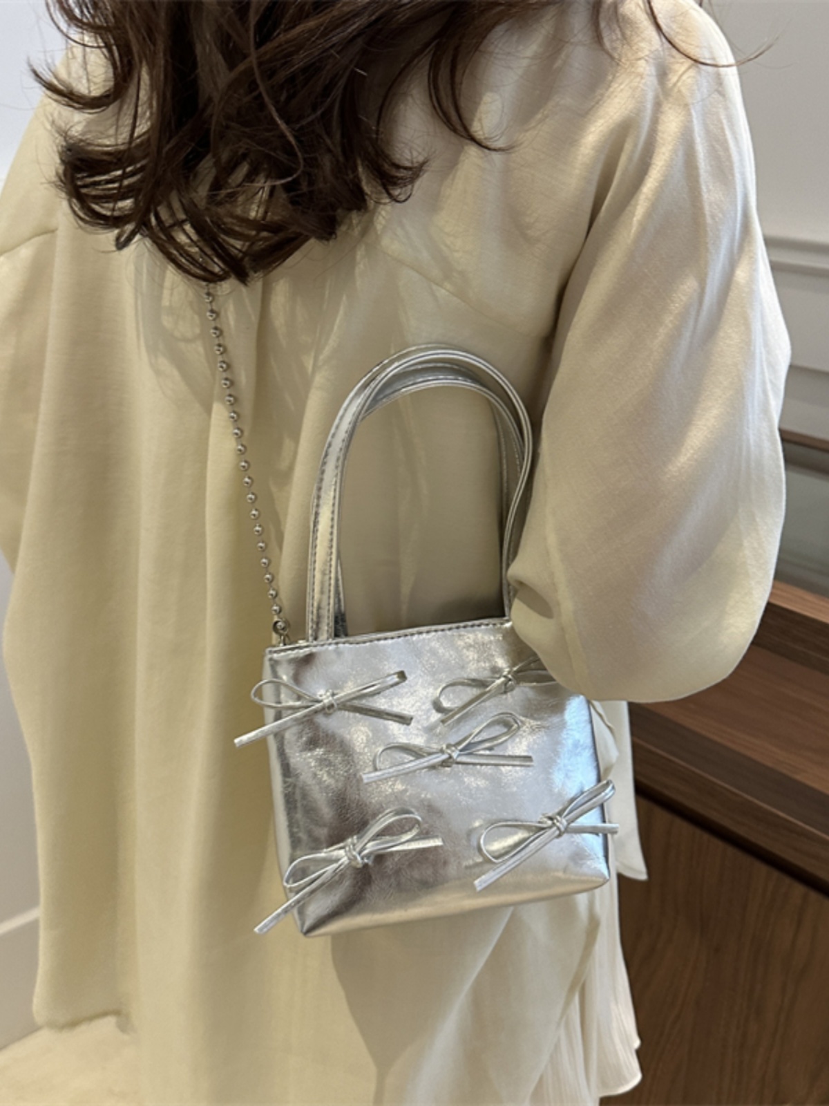 Concert Outfit Summer Women Bucket Hbag Chain, Silver Bow High-quality product featuring concert outfit ideas, summer fits, country concert outfit and more. Modern design that fits the latest trends. Premium materials ensure durability and comfort. Order now for special offers! Product designed with attention to every detail. Suitable for all occasions and personal styles.