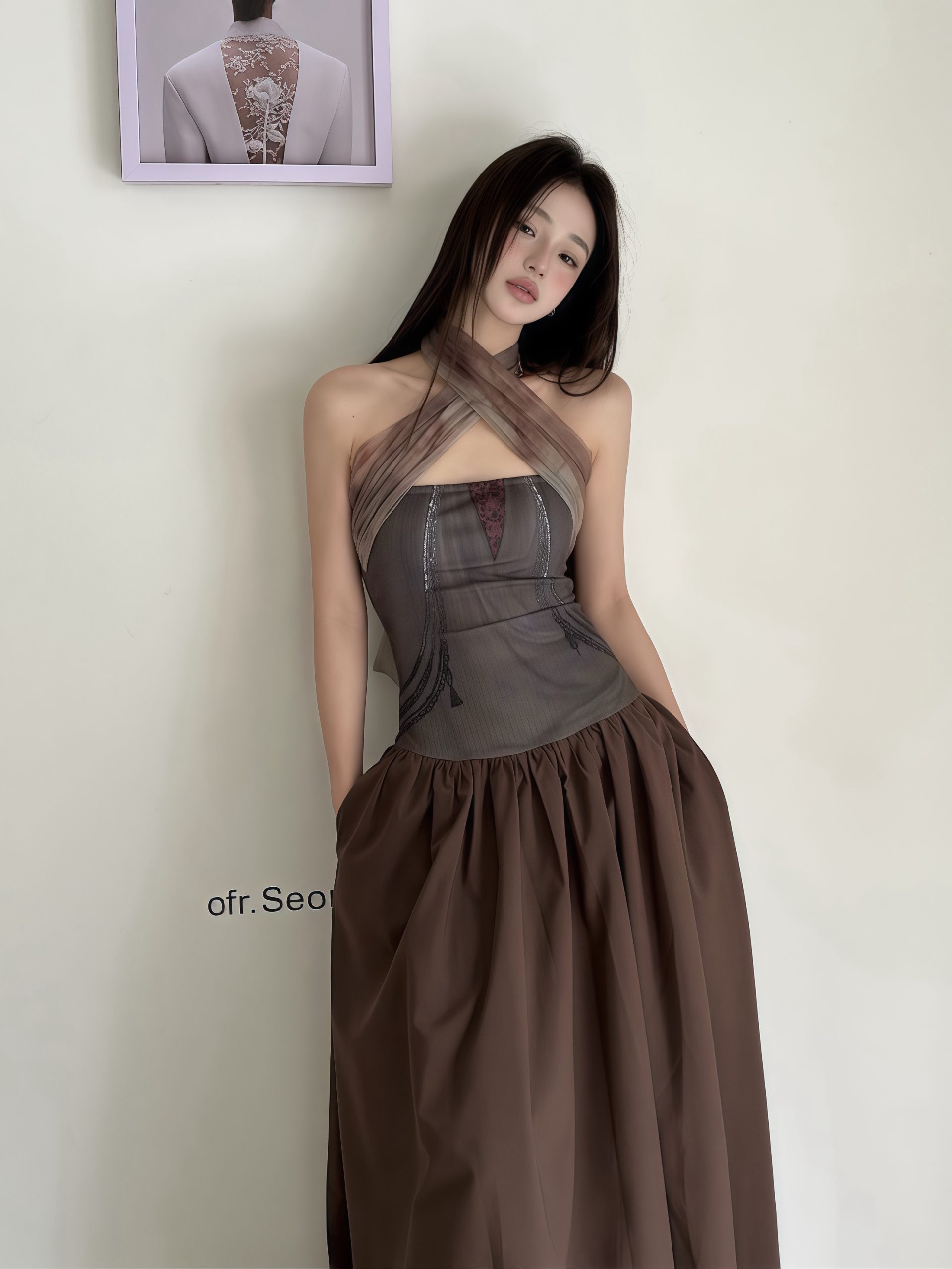 Concert Outfit Summer Printed Patchwork Multi Wear Long Strapless Dress, Y2K