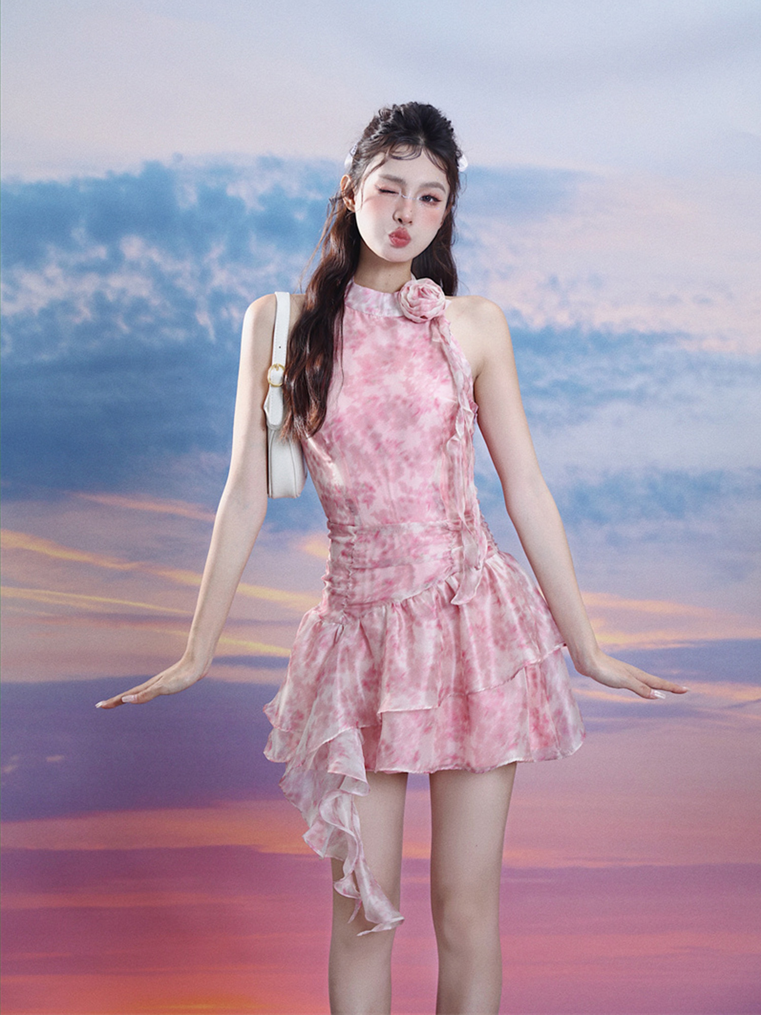 Concert Outfit Summer Sweetheart Halter Neck Printed Flowing Ribbon Dress Sleeveless Off Shoulder Tank a Summer Look