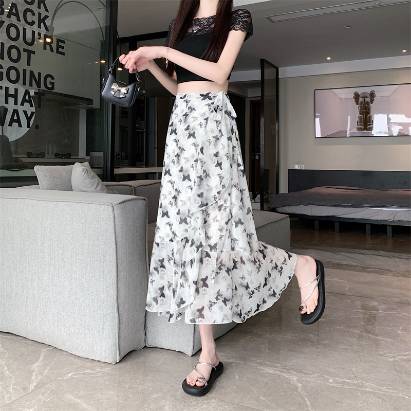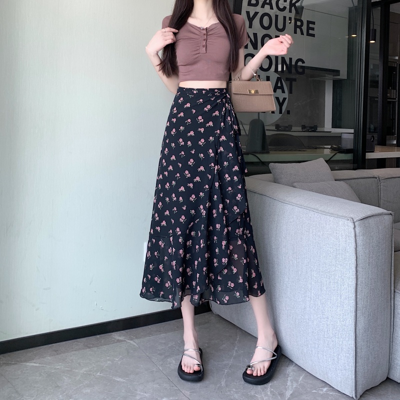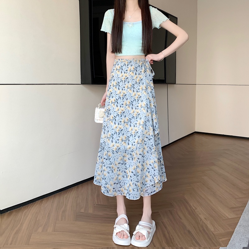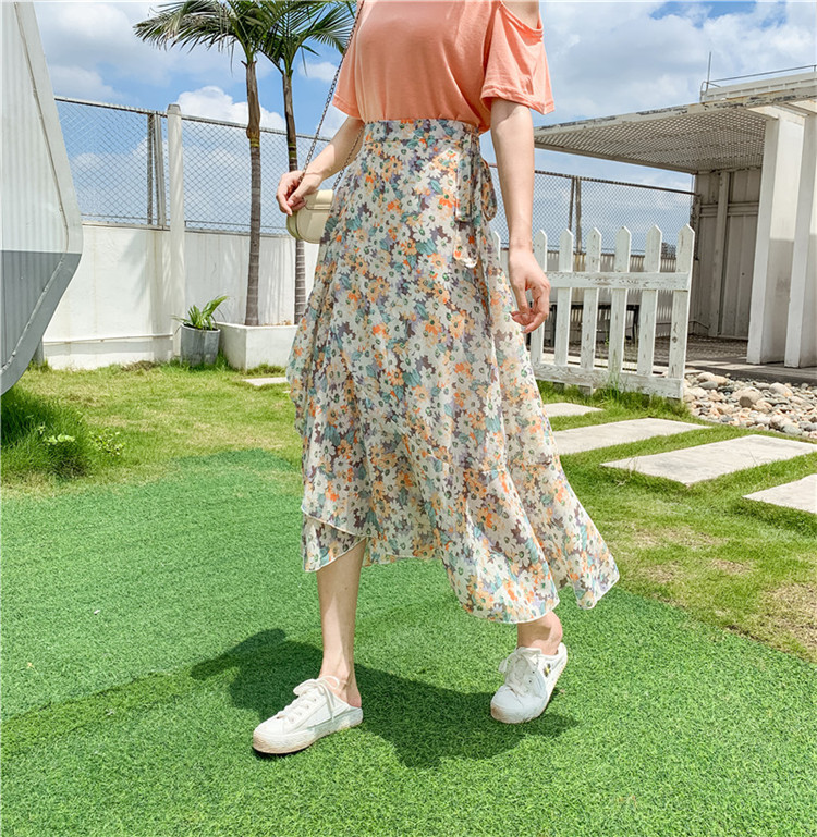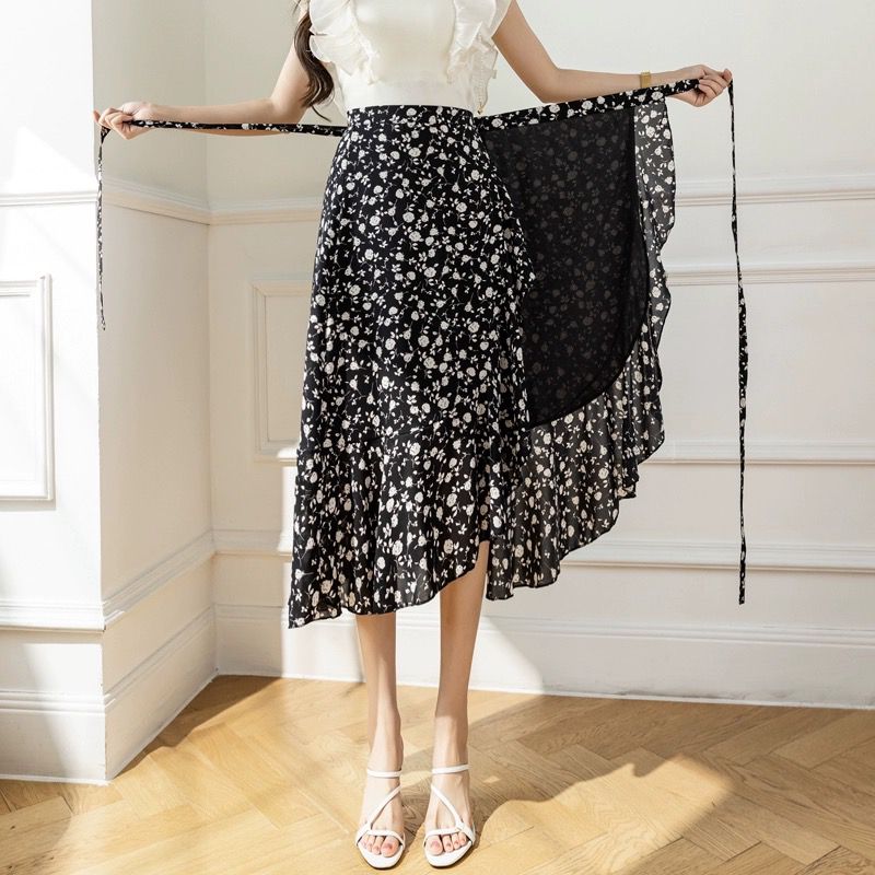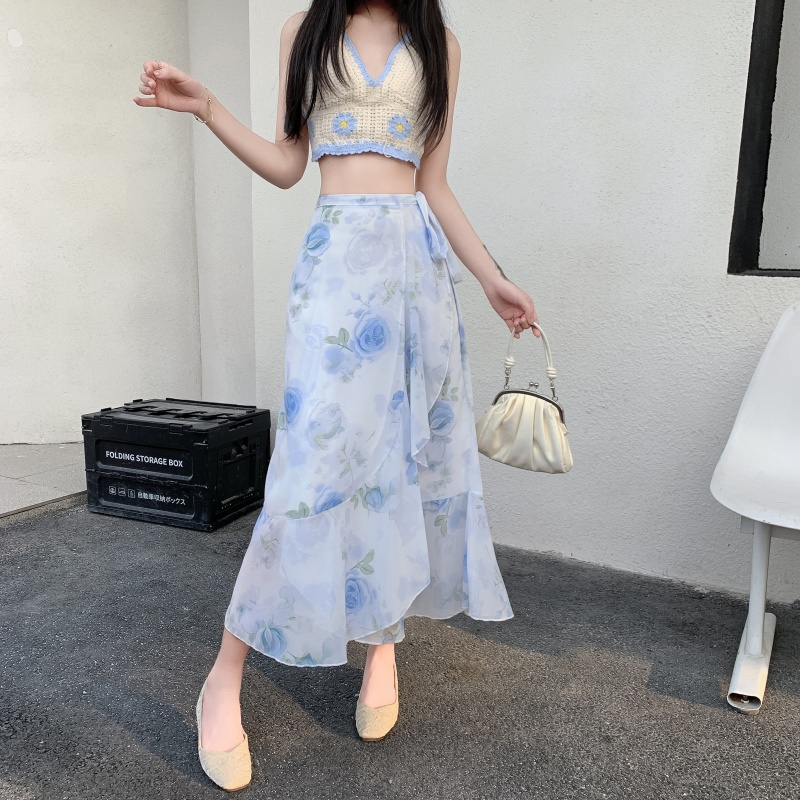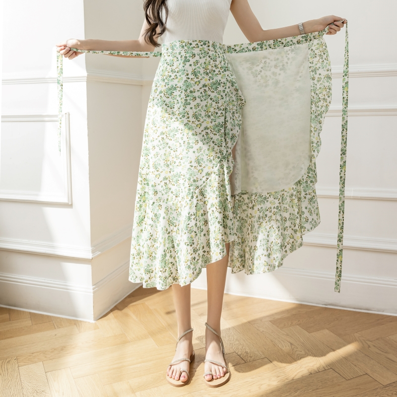 Concert Outfit Summer Tie Up Ruffled One Beach Skirt Women, Fishtail Floral Skirt, TikTok Fairy