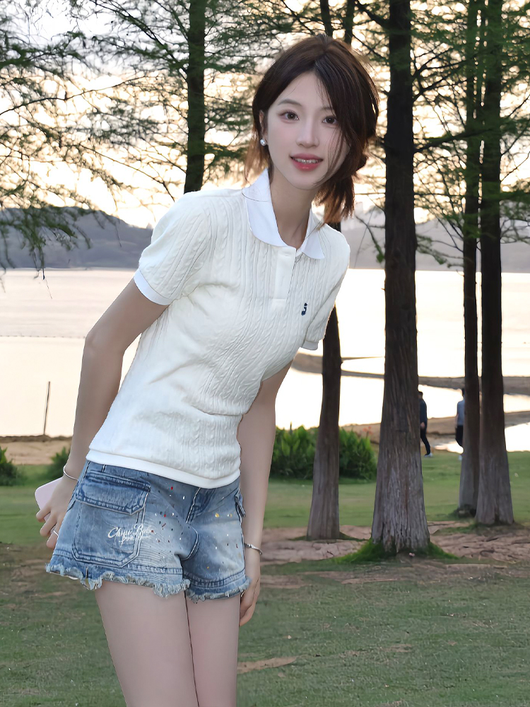 Elevate your summer wardrobe with our Women’s Knitted Short Sleeve Polo Shirt, featuring a unique twisted embroidered design that adds a touch of sophistication to your casual look. This slim fit top flatters your figure while providing comfort and breathability, making it the perfect choice for college days or weekend outings. Don’t miss out on this stylish essential—add to your cart today and redefine your summer fashion!
