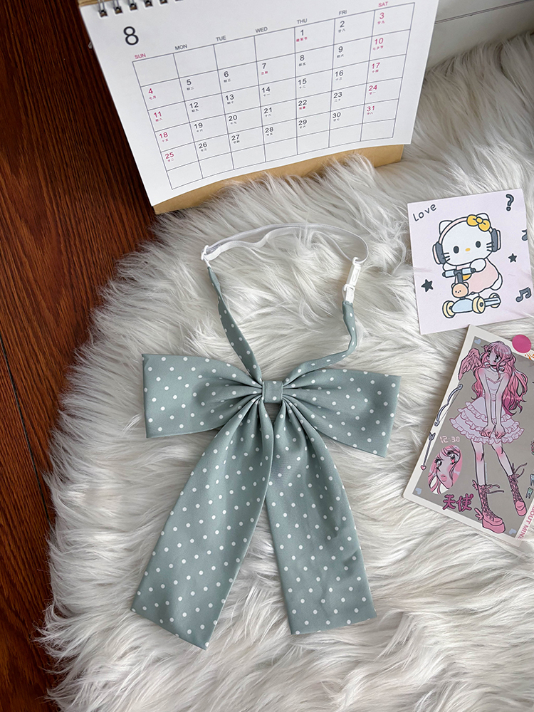 | Color | Black polka dot bow tie, Blue polka dot bow tie, Brown polka dot bow tie, Deep pink polka dot bow tie, Light green polka dot bow tie, Navy blue polka dot bow tie, Pink polka dot bow tie, Red polka dot bow tie, Taro purple polka dot bow tie, White polka dot bow tie, Yellow polka dot bow tie |