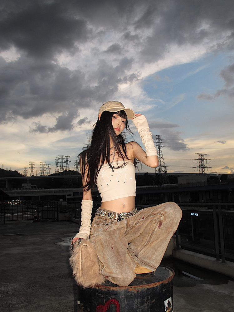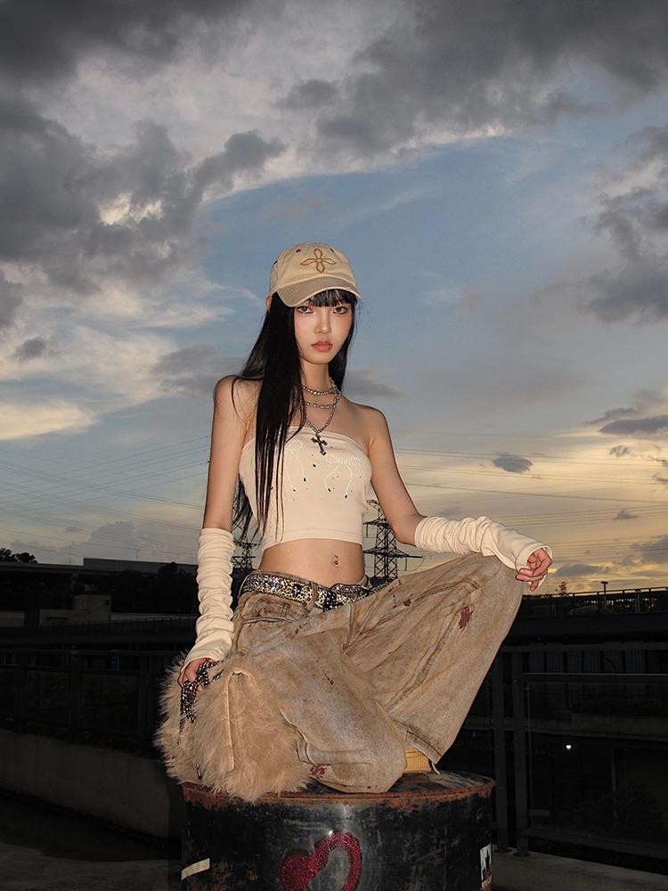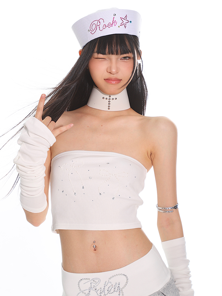 Concert Outfit Sweet Strapless Crop Top, Sleeve Set Bowknot, Pearl, Rhinone – Early Autumn