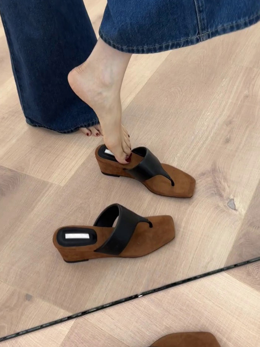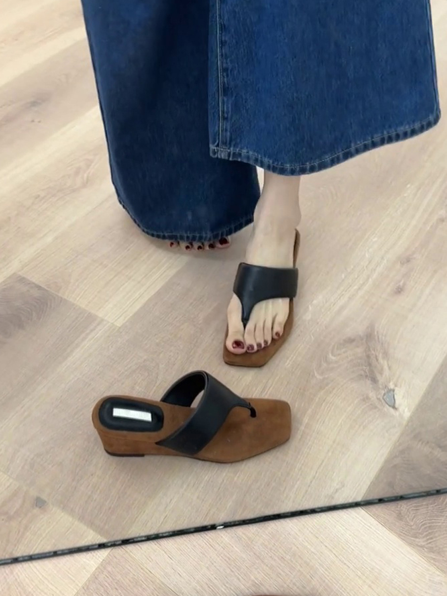 Stylish Concert Outfit: Thick Soled Sheepskin Flip Flops for Women