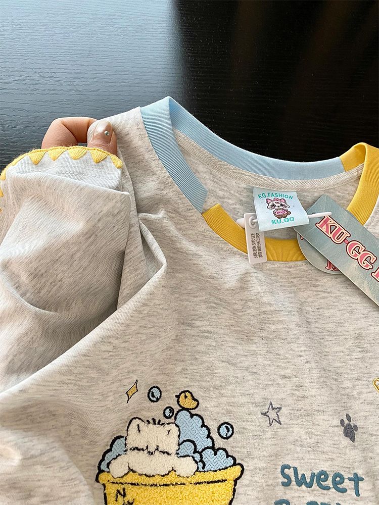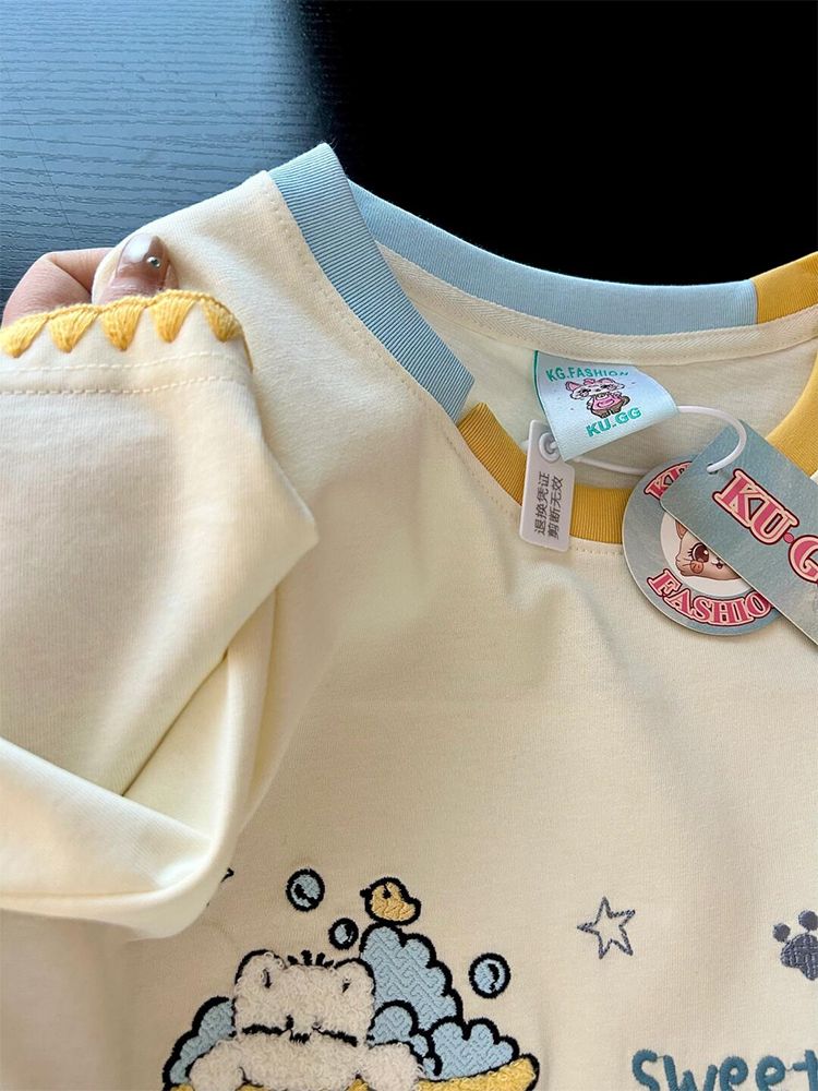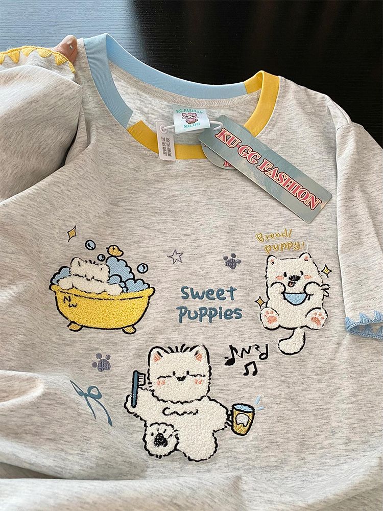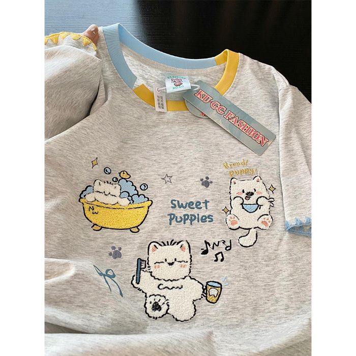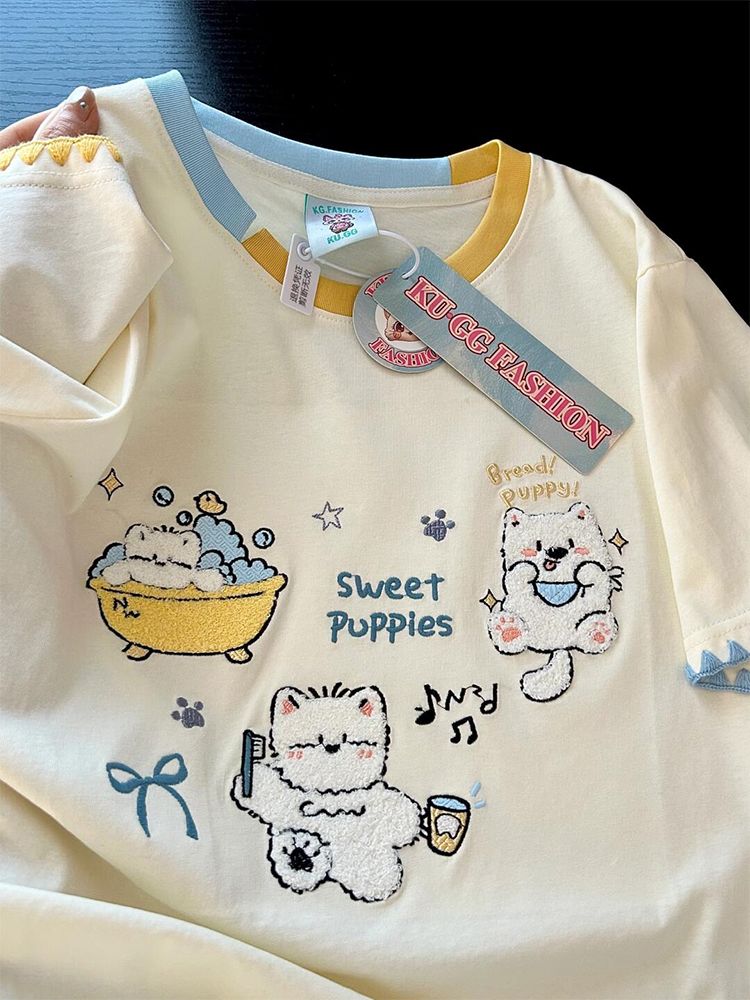 Concert Outfit Embroidered Cute Cat Short Sleeve T- shirt Women Summer MuHave