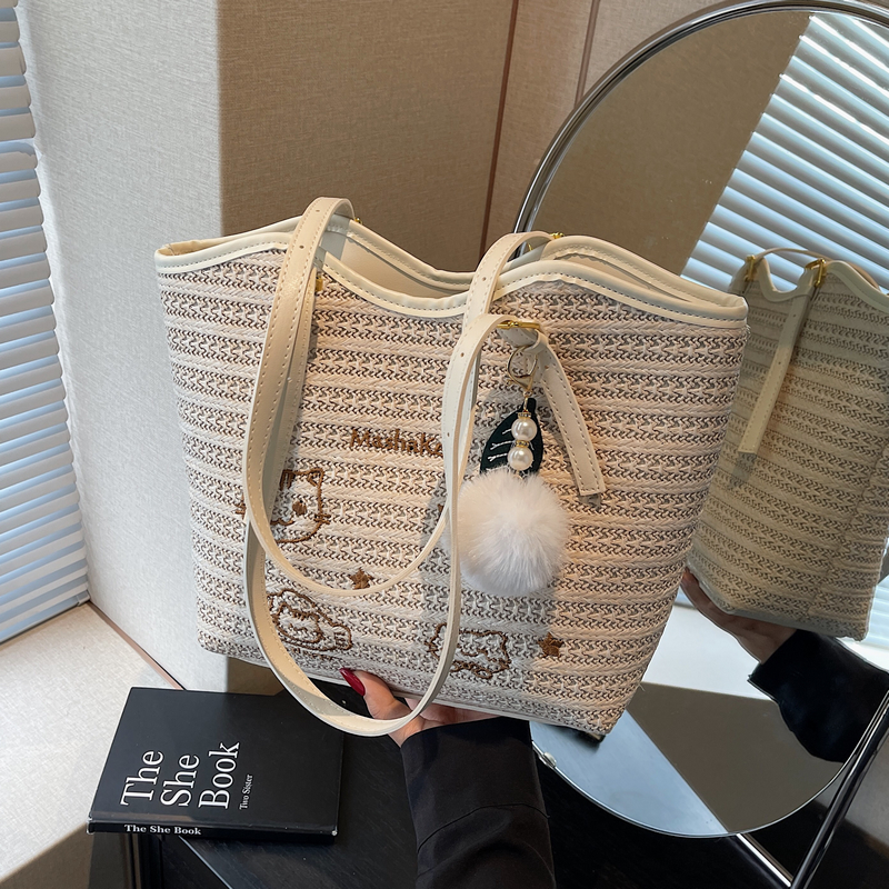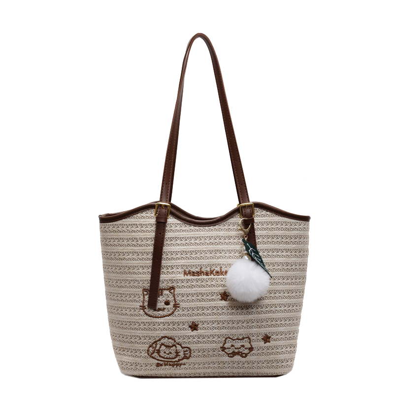 Concert Outfit Summer Woven Tote Bag Women, Embroidered Shoulder Bag, Large Capacity able Hbag