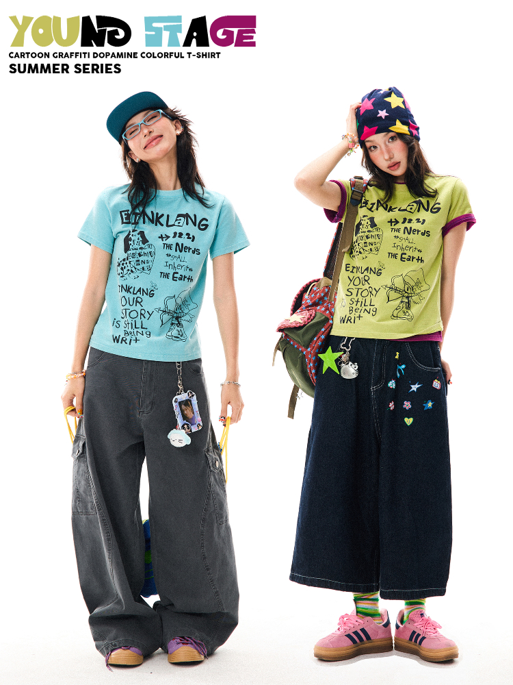 Embrace your unique style with our Fun Print Short Sleeve T-Shirt for Women, designed for a trendy summer look. This slim fit casual top showcases vibrant 90s-inspired prints that add a playful touch to any outfit, making it the perfect choice for warm weather outings. Crafted for comfort and versatility, it pairs effortlessly with shorts, jeans, or skirts. Elevate your wardrobe with this must-have summer staple—add it to your cart today!