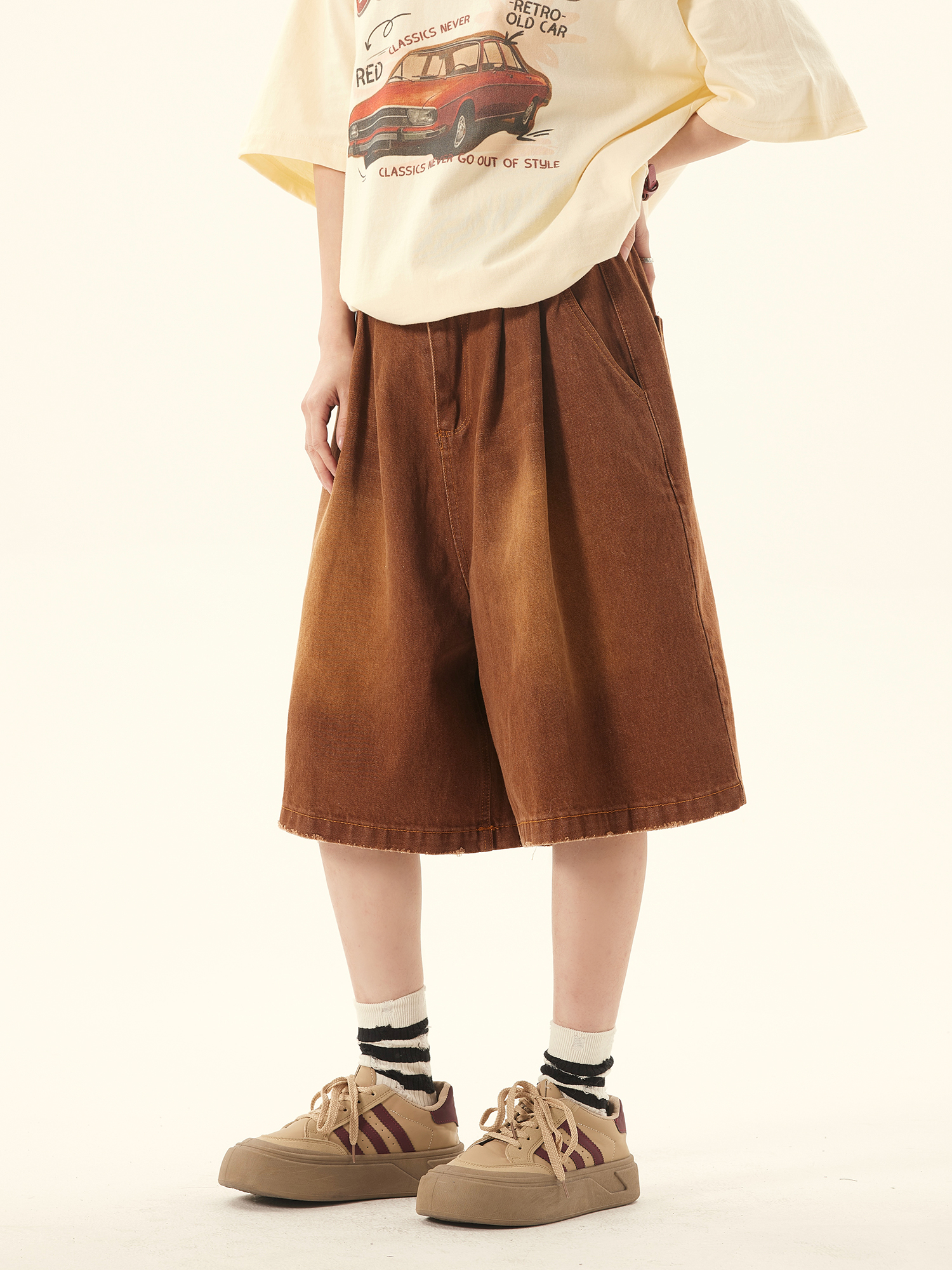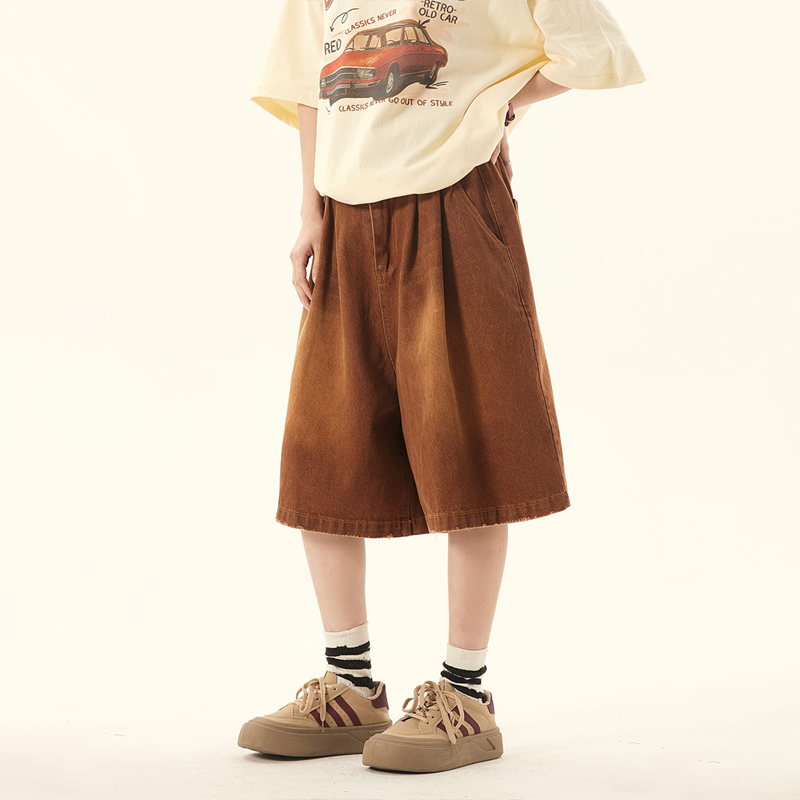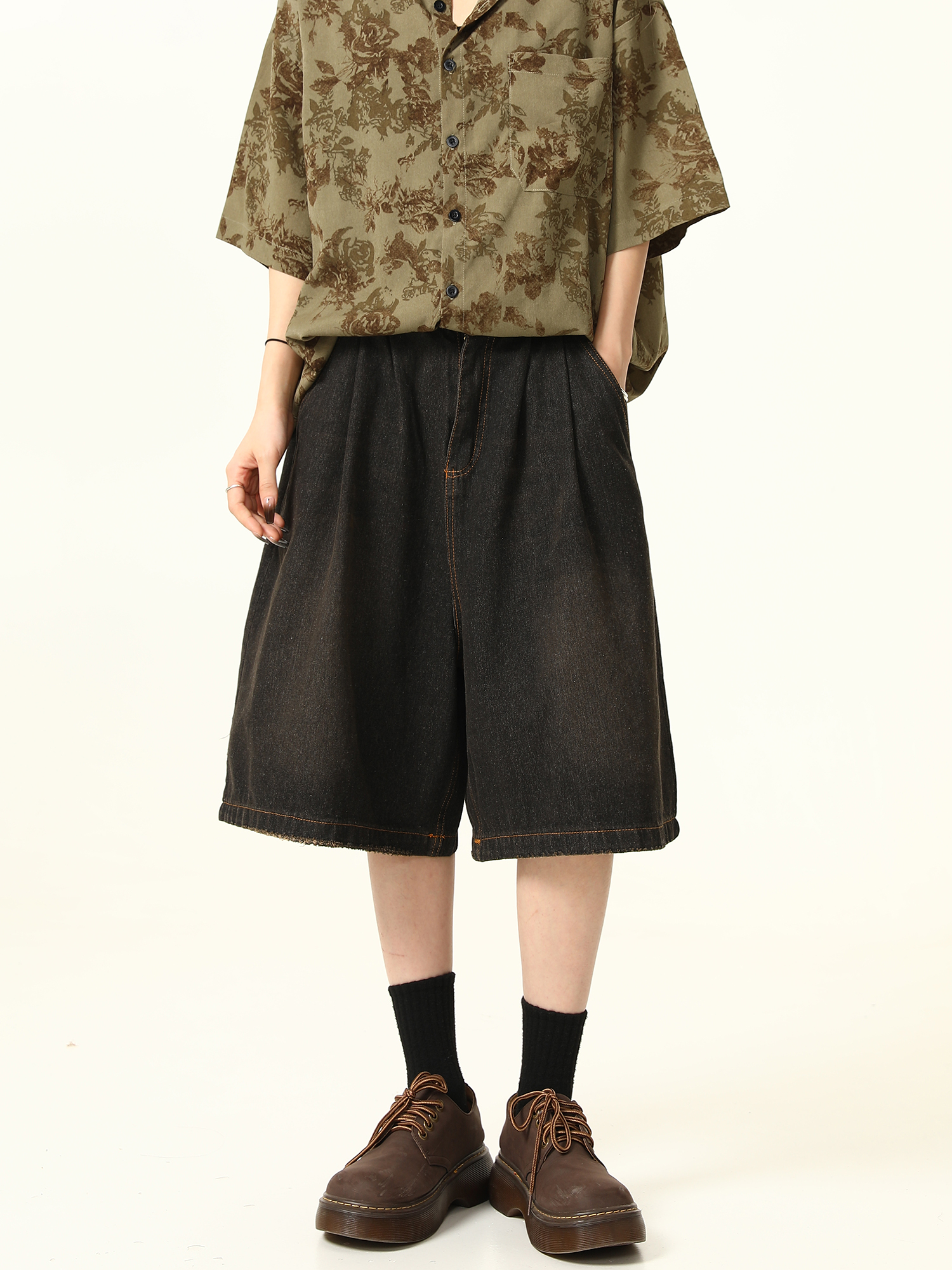 Concert Outfit Unisex Retro Denim Shorts Loose Fit, Summer Five Point, Streetwear Couples