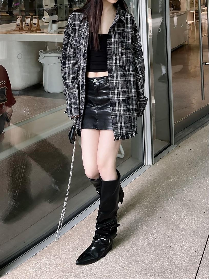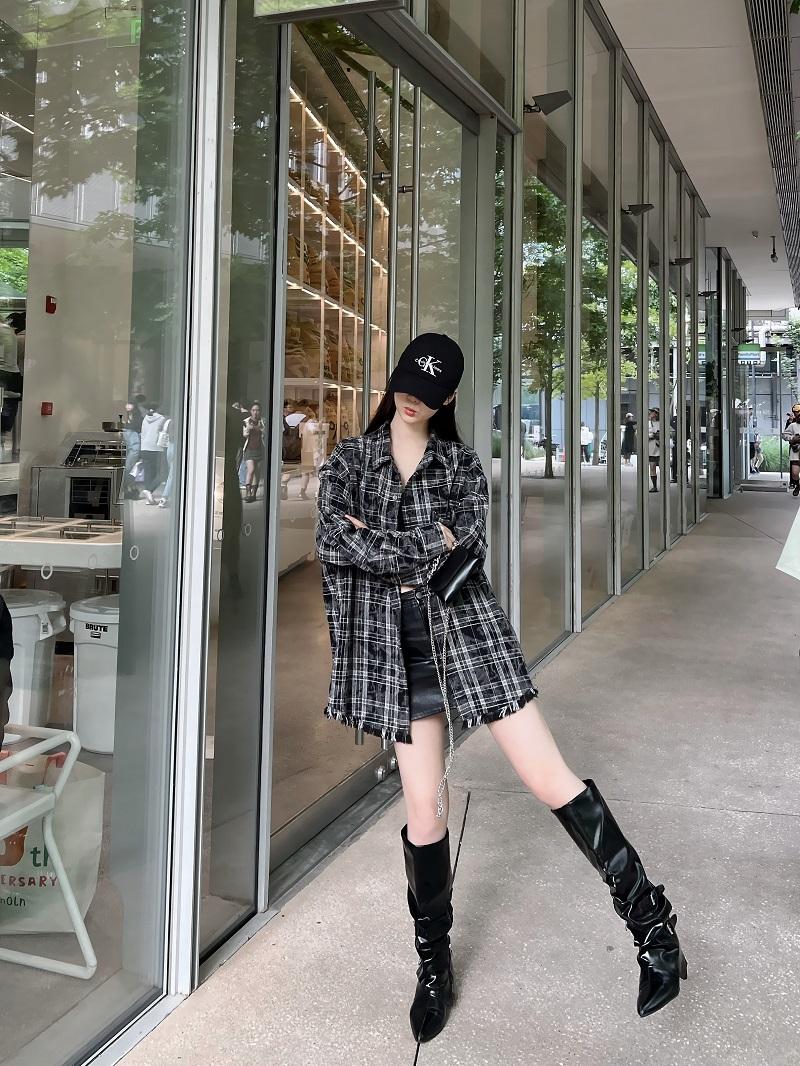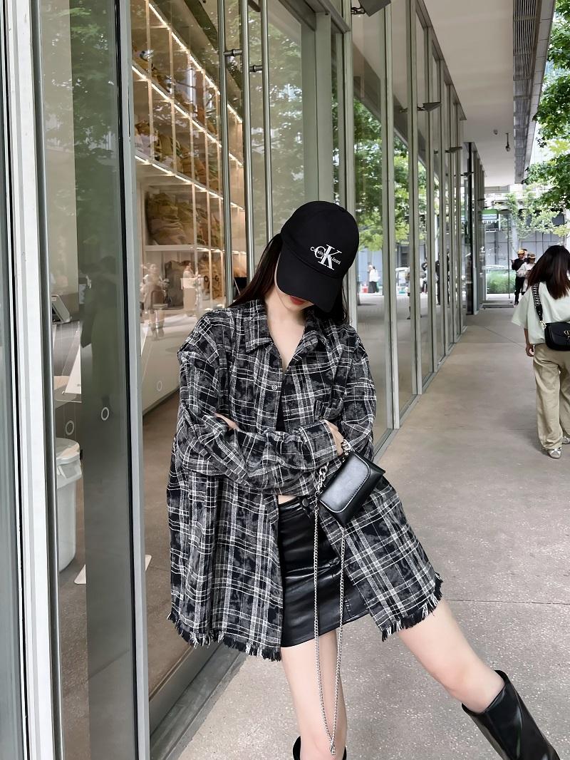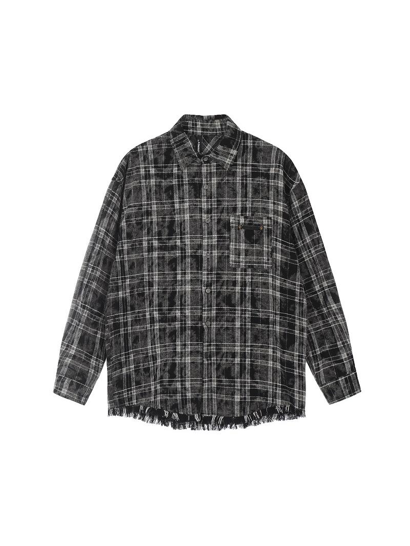Concert Outfit Unisex Retro Plaid Fringe Long Sleeve Shirt Loose Fit Couples Vintage Top