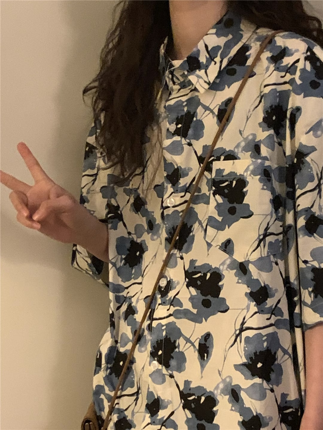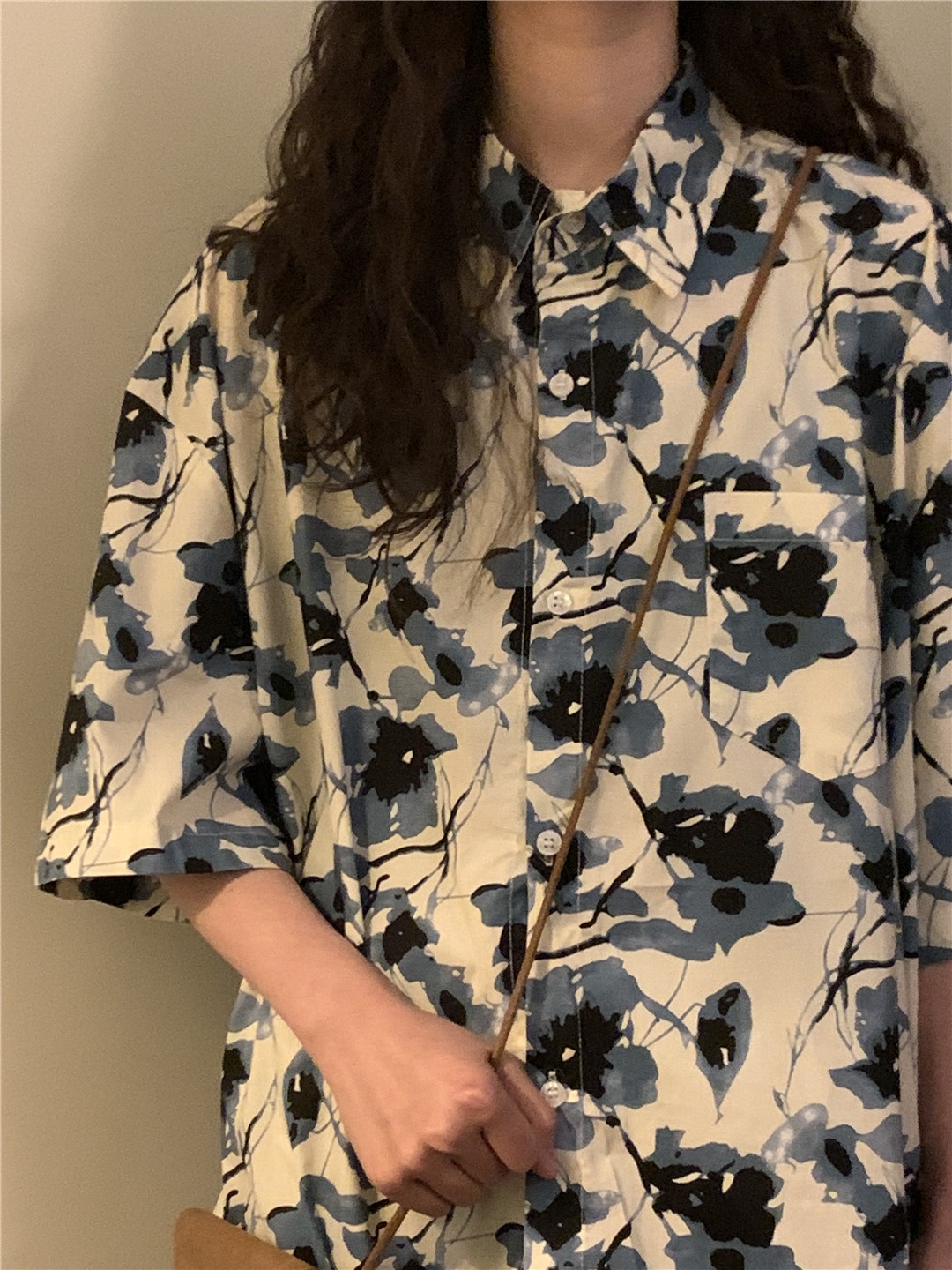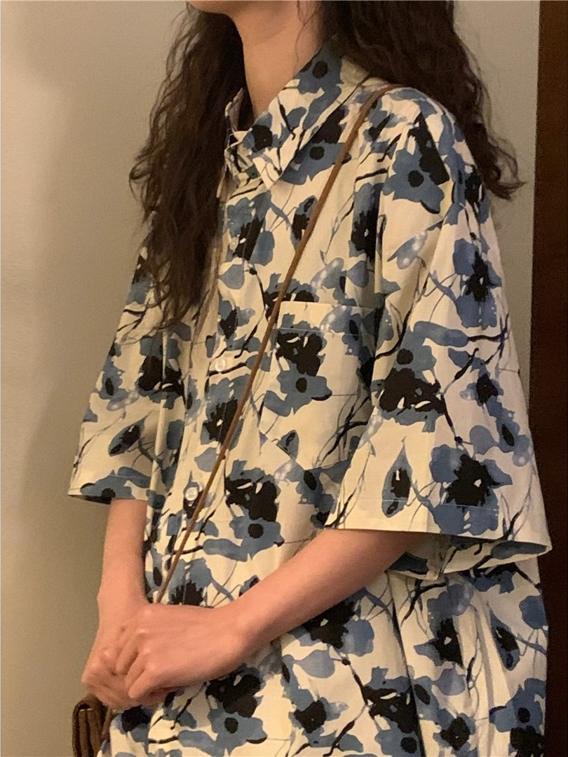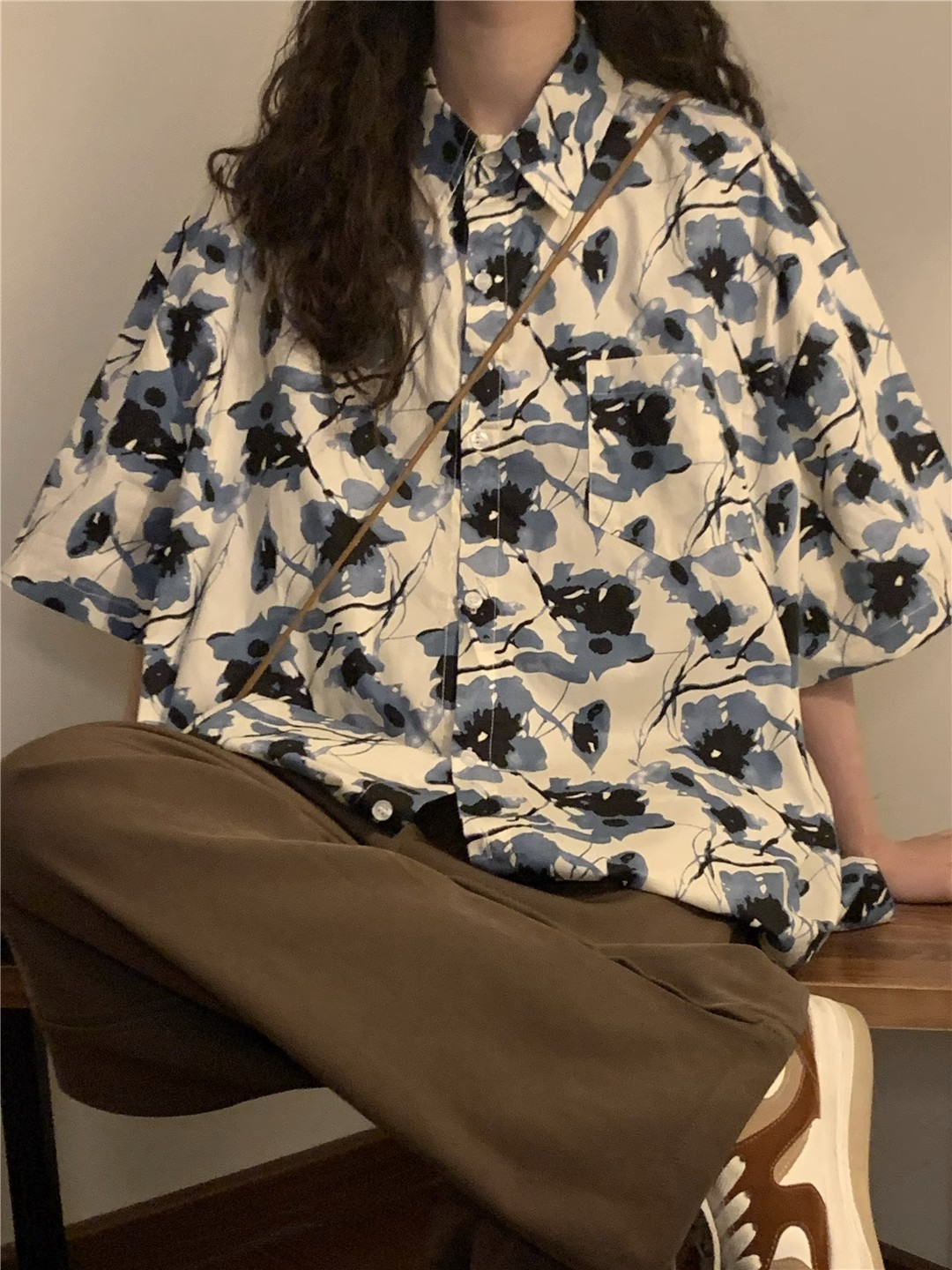 Concert Outfit Unisex Retro Floral Polo Collar Shirt Loose – Concert Outfit