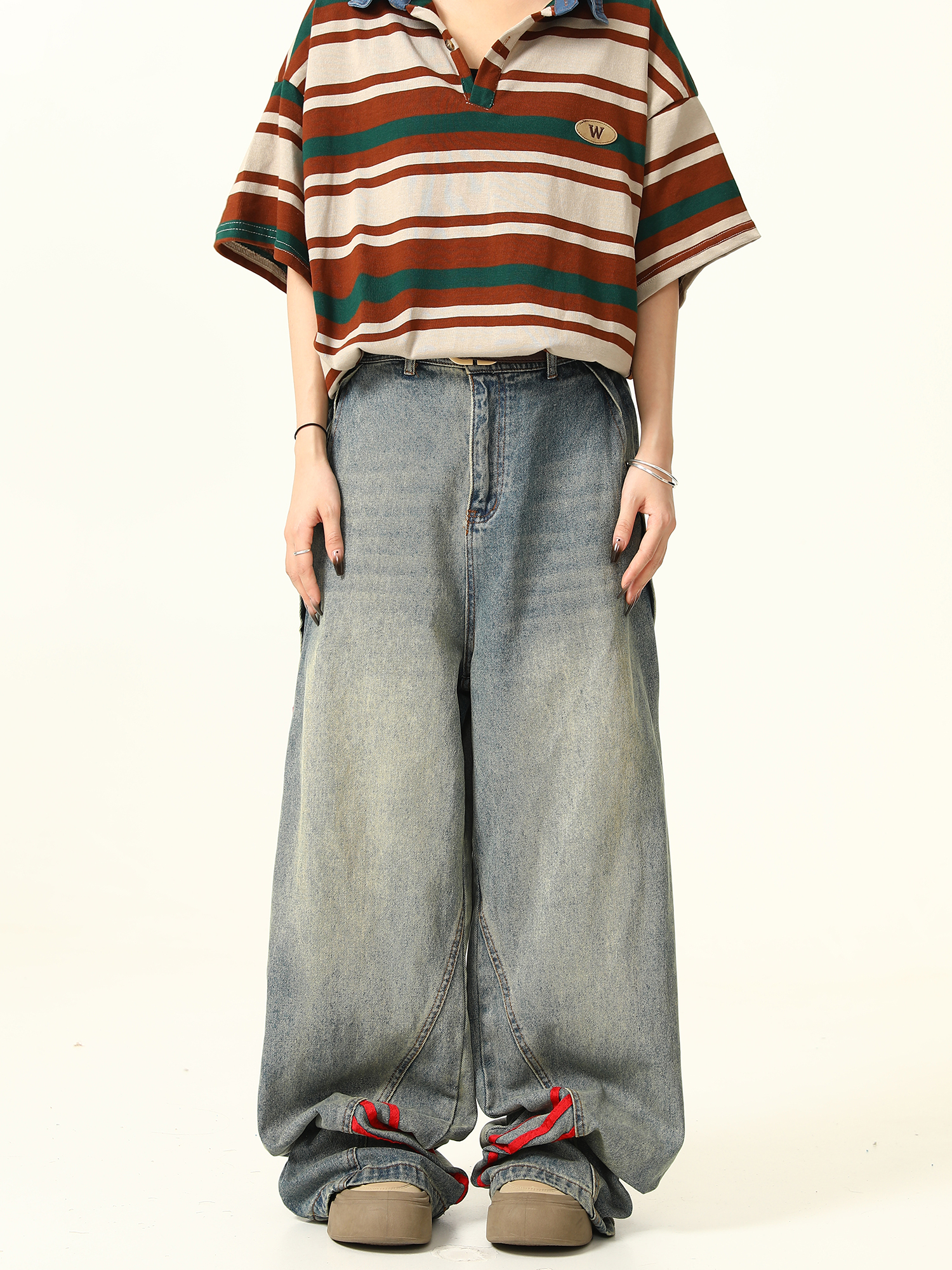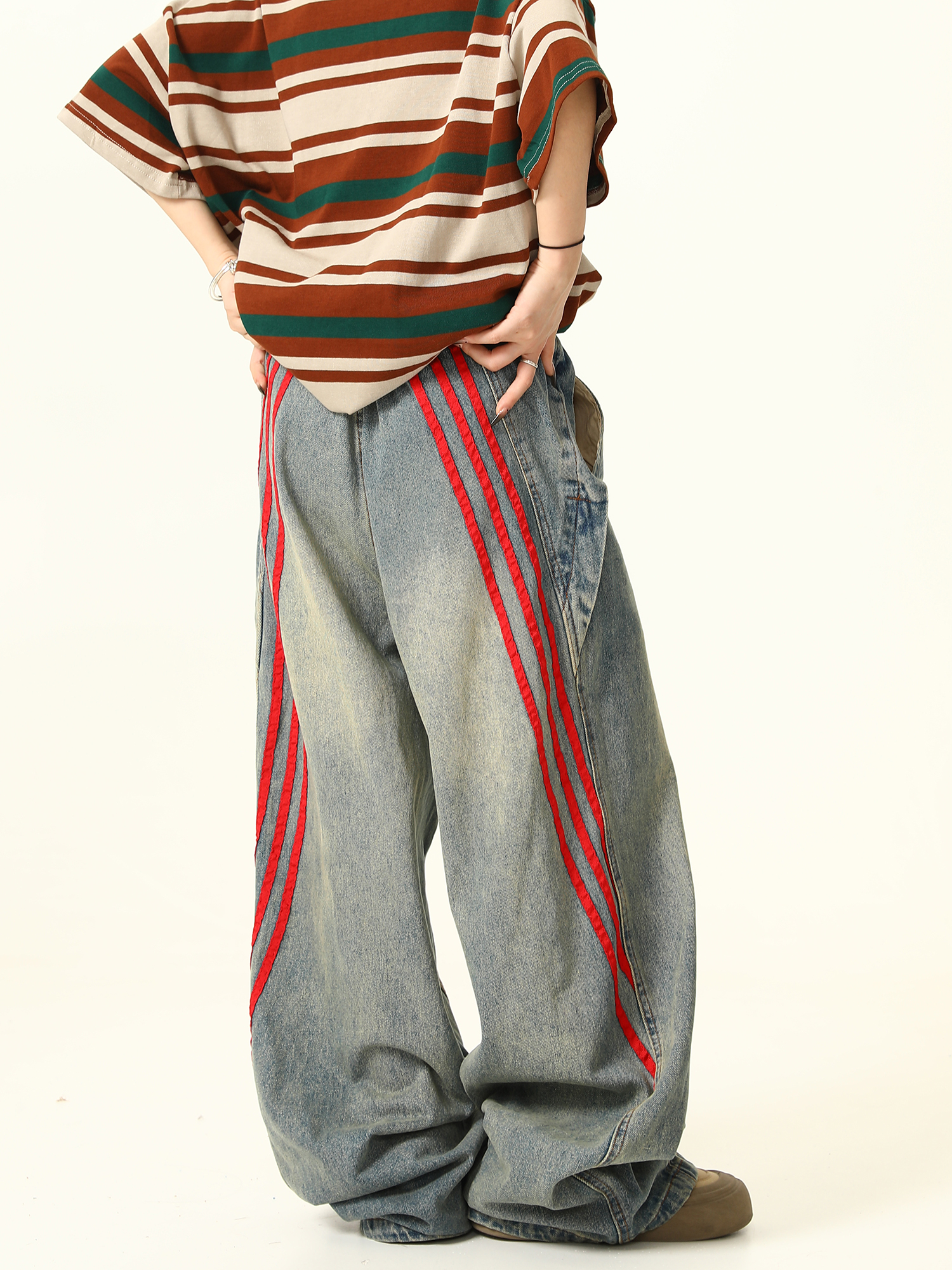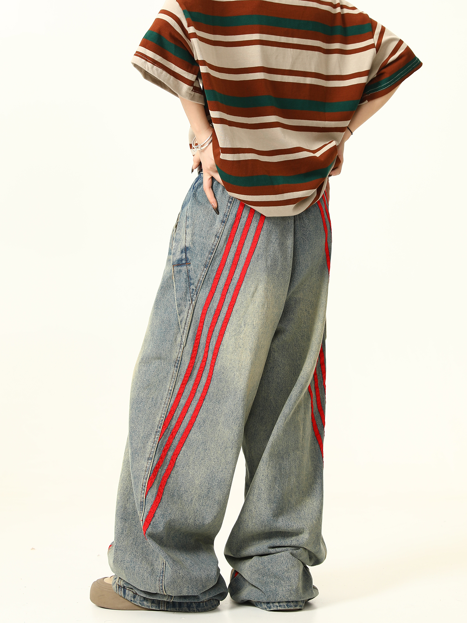 Elevate your streetwear game with our Unisex Wide-Leg Striped Denim Pants, designed for those who appreciate retro American style. These loose trousers feature a striking striped pattern that adds a bold touch to any outfit, while the wide-leg fit ensures maximum comfort and versatility for all body types. Perfect for casual outings or making a statement, these pants are a must-have addition to your wardrobe. Don’t miss out on this trendy essential—add to your cart today!