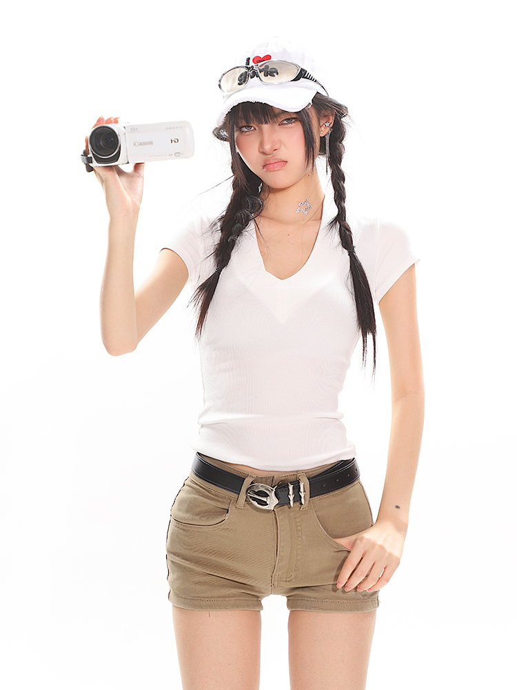 Elevate your casual wardrobe with our V-Neck Slim-Fit Short Sleeve T-Shirt, designed to flatter every figure with its high-elasticity fabric. This versatile top combines comfort and style, making it the perfect choice for any occasion—from a day out with friends to a cozy night in. Crafted for a chic American style, this essential tee pairs effortlessly with jeans or skirts. Don’t miss out on this must-have addition to your collection; add it to your cart today!
