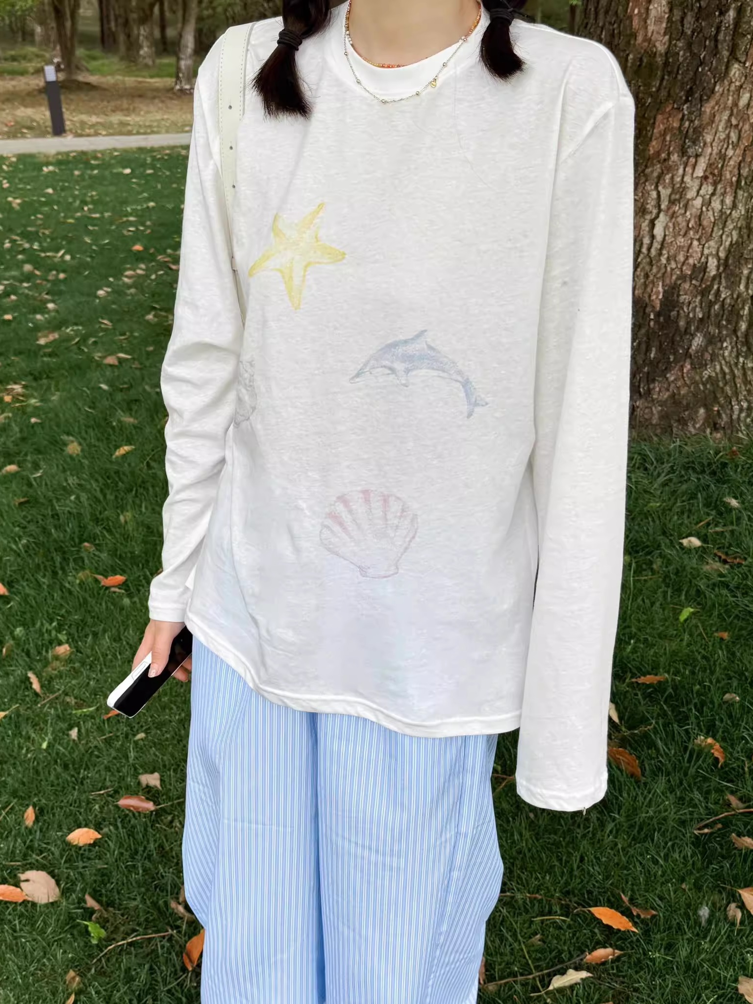 Elevate your casual wardrobe with our Versatile Long-Sleeve Dolphin Cartoon Print Sun Protection Cover-Up. Crafted from slightly sheer snowflake cotton, this stylish piece offers a relaxed fit and delightful Korean style, making it perfect for layering or wearing solo. Stay protected from the sun while showcasing your playful side—ideal for beach outings or casual days out. Don’t miss out on this trendy essential; add it to your cart today!