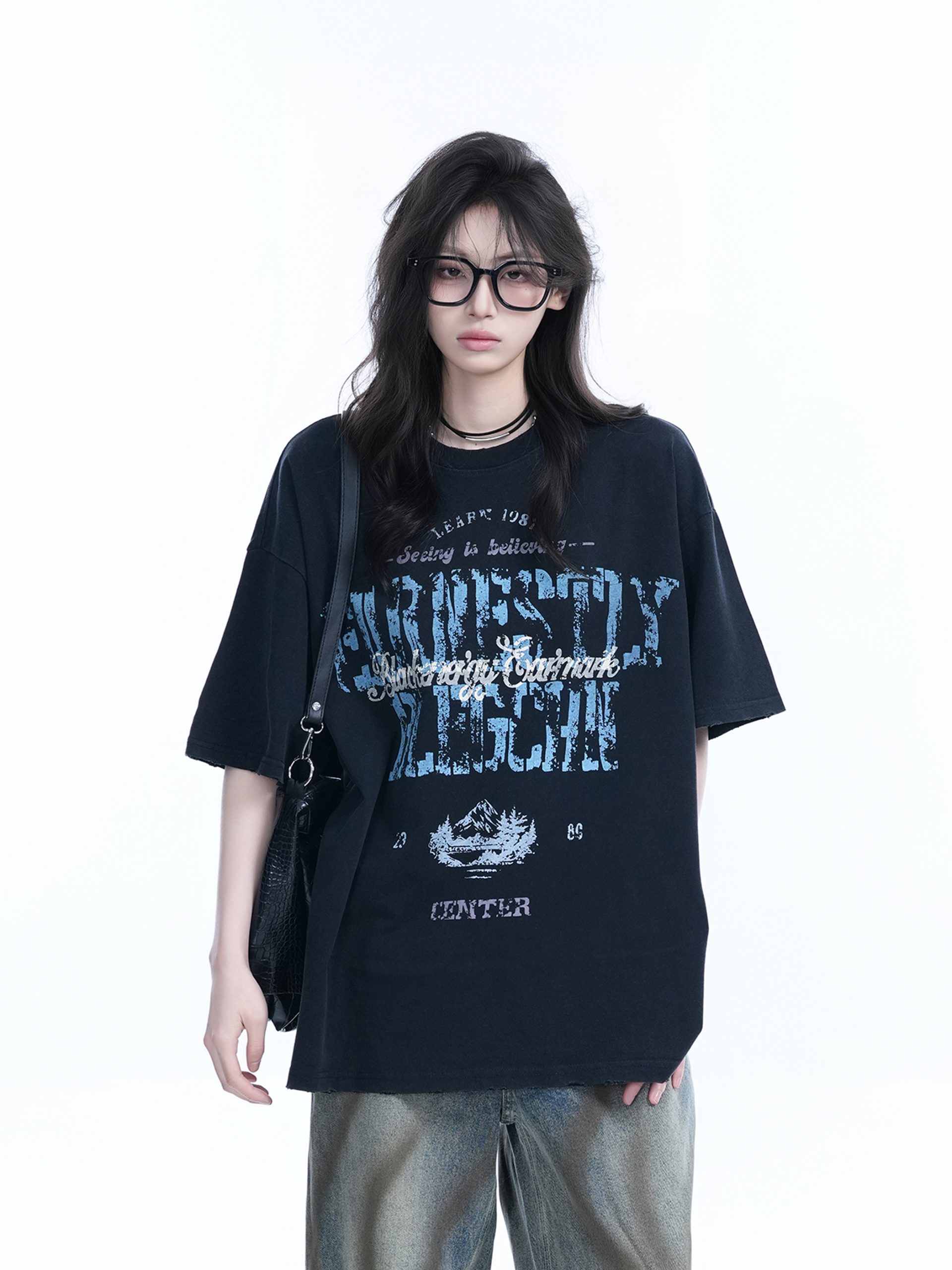 Elevate your casual wardrobe with our Vintage American-Style Distressed Loose Fit Short-Sleeve T-Shirt for Women. This Y2K fashion essential features a unique mottled print and a relaxed silhouette, offering both style and comfort for any occasion. Perfect for layering or wearing solo, it adds a touch of retro flair to your look while ensuring a comfortable fit all day long. Don’t miss out on this must-have piece—add it to your cart today!