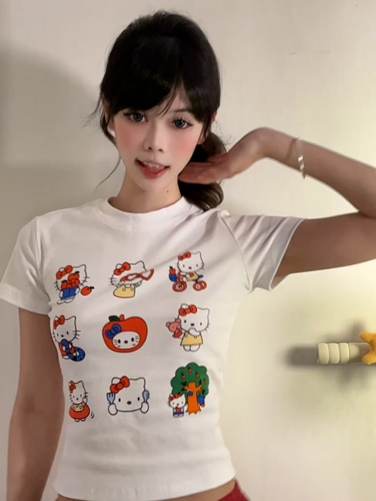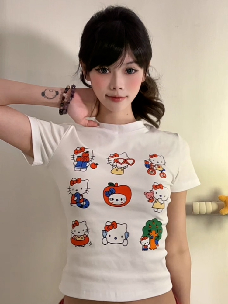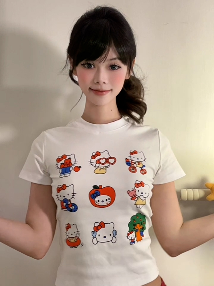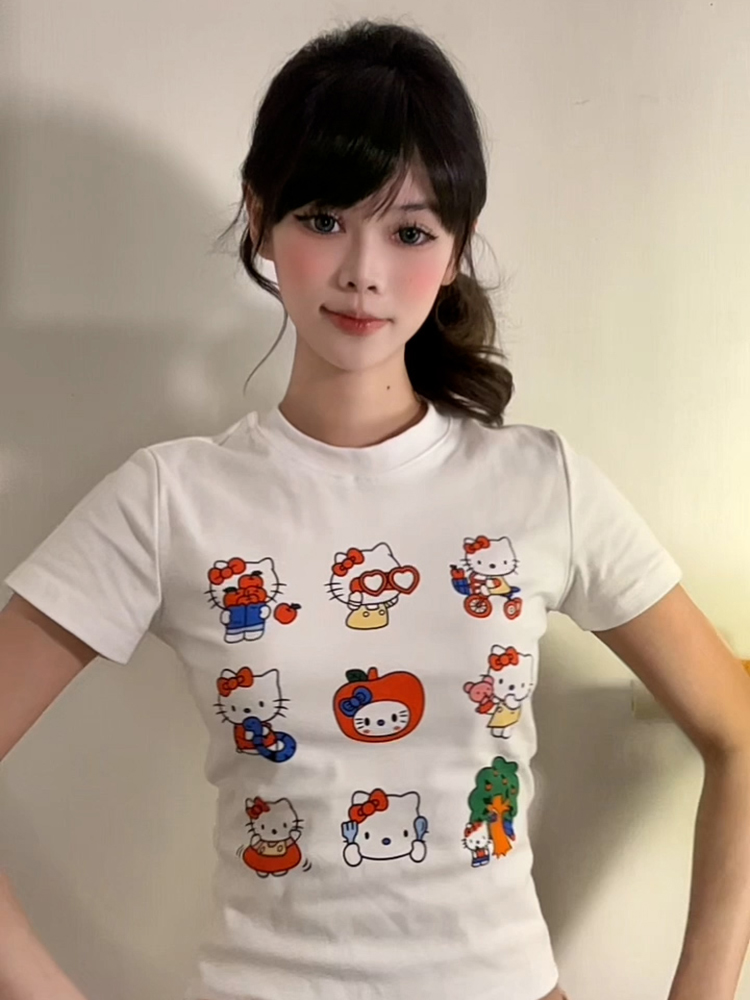 Embrace the charm of summer with our Vintage American Summer Kitty Cat Print Short-Sleeve Women’s Fitted Top. This adorable round neck tee features a playful kitty cat design, perfect for adding a touch of whimsy to your wardrobe. Made from soft, breathable fabric, it offers a flattering fitted silhouette that ensures you stay comfortable and stylish all day long. Whether you’re dressing up for a casual outing or lounging at home, this top is your go-to choice for a sweet, cool look. Don’t miss out—add this delightful tee to your cart today!