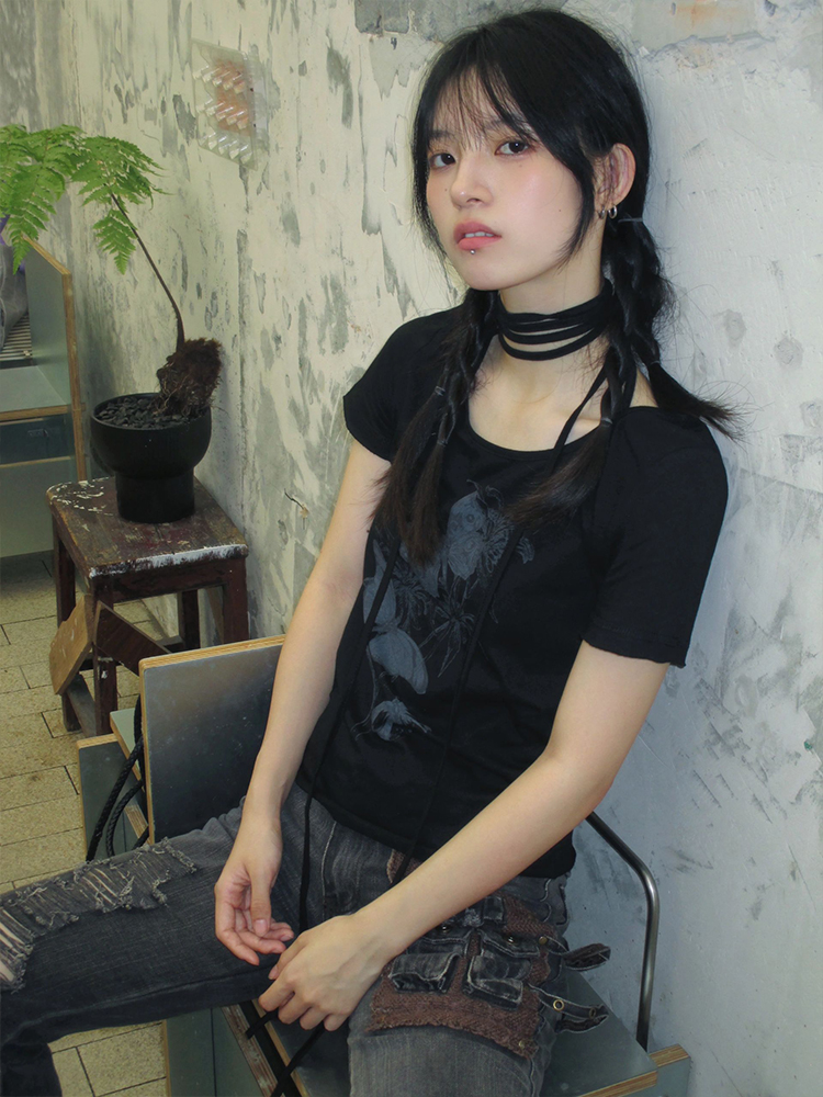 Concert Outfit Vintage Black Butterfly Print Tie up Cotton – Concert Outfit