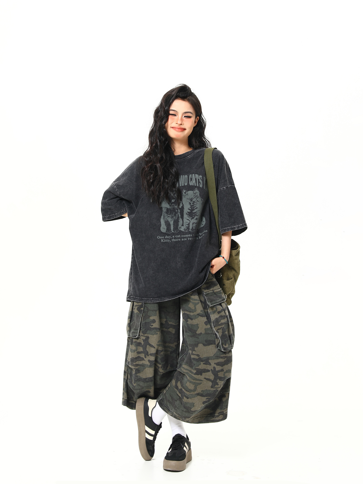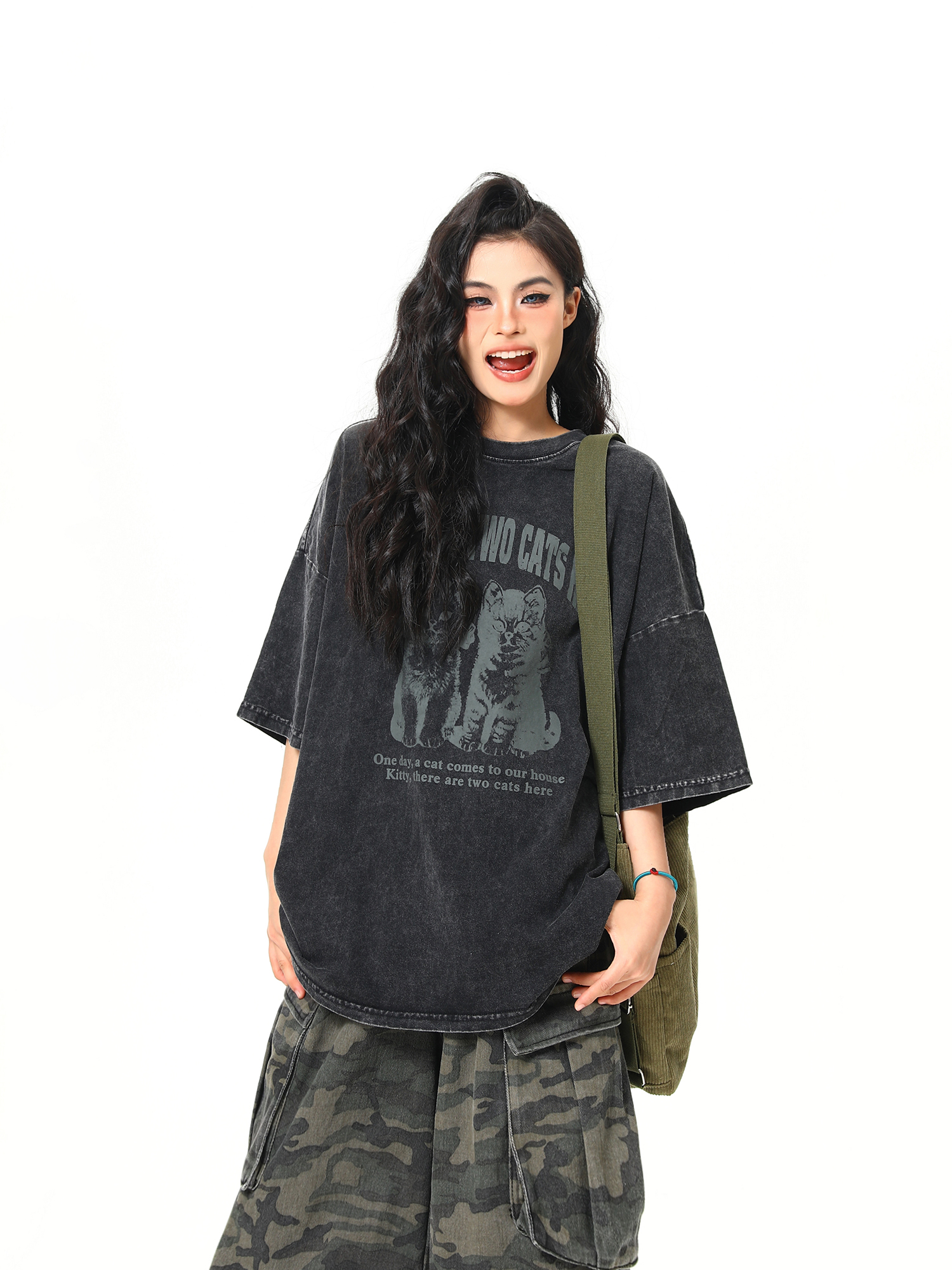 Unleash your inner retro lover with our Vintage Black Cat Printed Short Sleeve T-Shirt for Women. This loose, wash-distressed tee captures the trendy 90s couple style while offering ultimate comfort for those warm summer days. Crafted for a relaxed fit, it features a playful black cat graphic that adds a whimsical touch to any outfit. Perfect for casual outings or lounging at home, this versatile t-shirt is a must-have for your wardrobe. Don’t miss out on this stylish addition – add to your cart now!