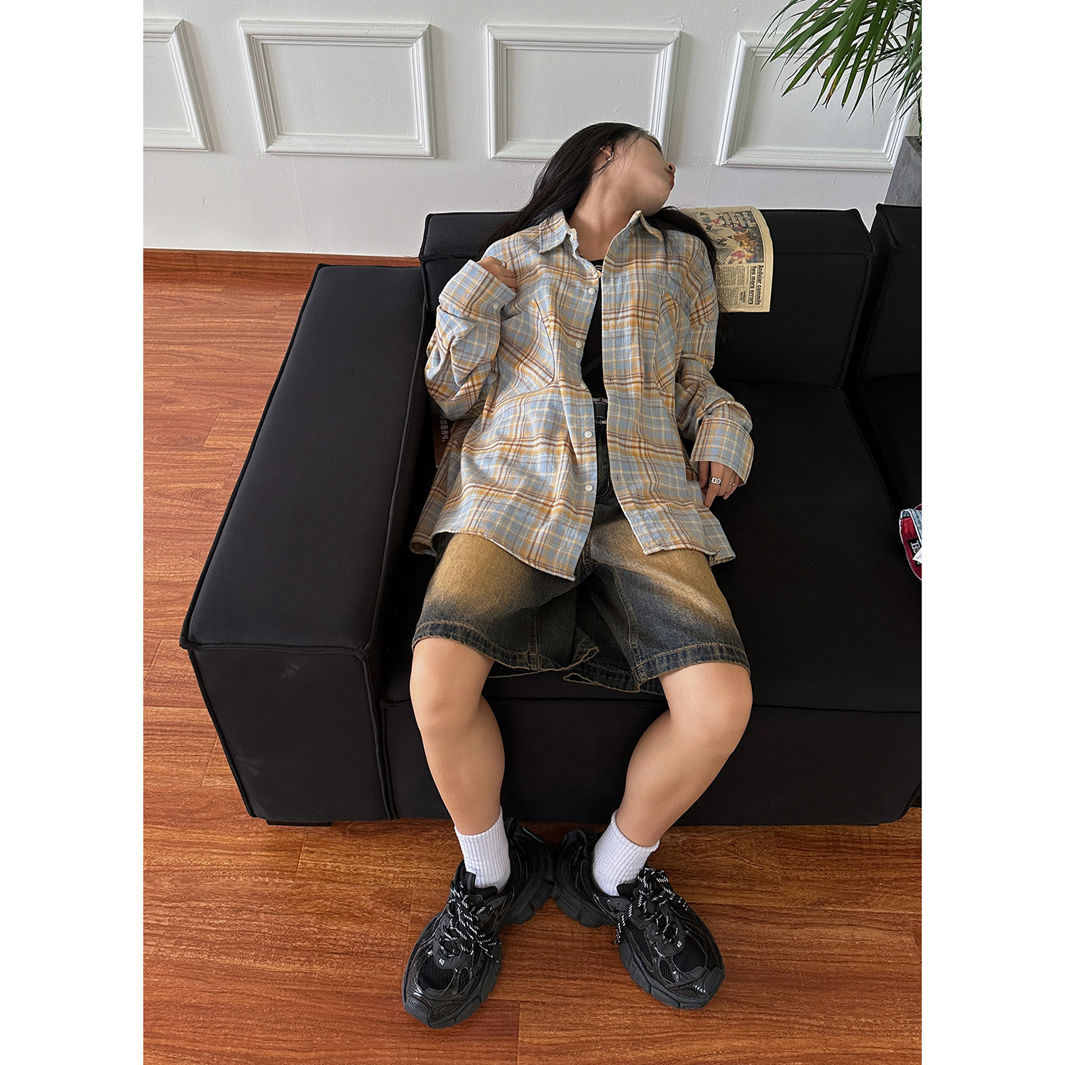 Concert Outfit Vintage Brushed Plaid Long Sleeve Shirt Men Women, Pleated Pocket, Casual Couple Jacket, Spring Autumn