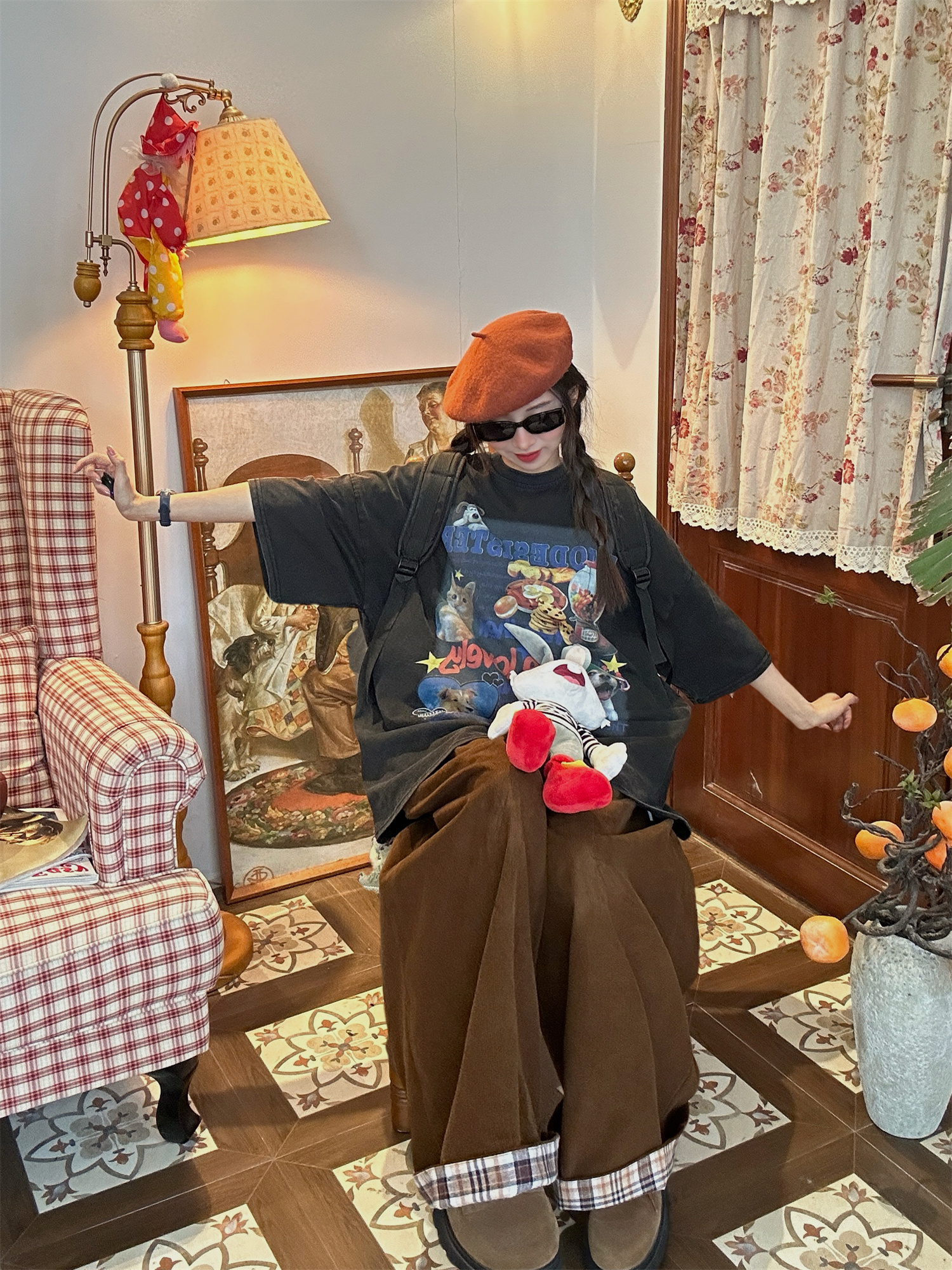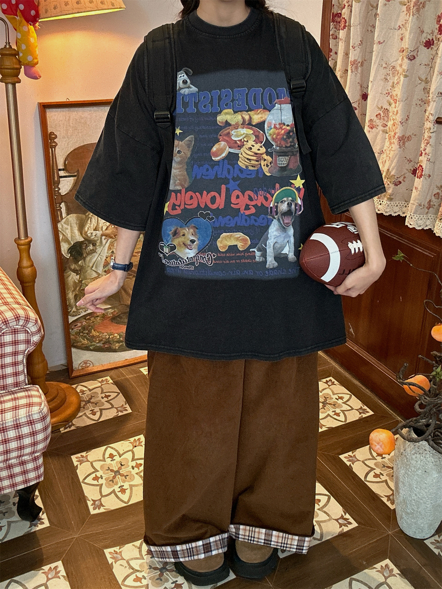 Embrace a playful retro vibe with our Vintage Cartoon Cat and Dog Print Half Sleeve T-Shirt for Women. This washed, distressed tee features a loose fit that perfectly captures the essence of 90s-inspired casual style, making it an ideal choice for laid-back days or fun outings. The whimsical cartoon graphics add a unique touch to your wardrobe, allowing you to express your love for all things quirky and nostalgic. Pair it with your favorite jeans or shorts for an effortlessly chic look. Don’t miss out on this must-have staple—add to your cart today!