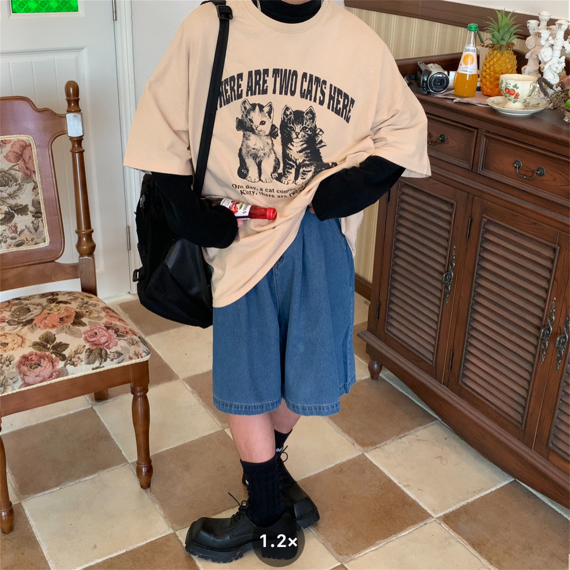 Embrace nostalgic vibes with our Vintage Cat Print Loose Fit Couple T-Shirt, designed for ultimate comfort on those lazy days. This retro trendy round neck top features short sleeves and a relaxed fit, making it perfect for lounging or casual outings. The charming cat print adds a playful touch to your wardrobe, allowing you and your partner to express your love for felines in style. Don’t miss out on this must-have addition to your collection—add it to your cart today!