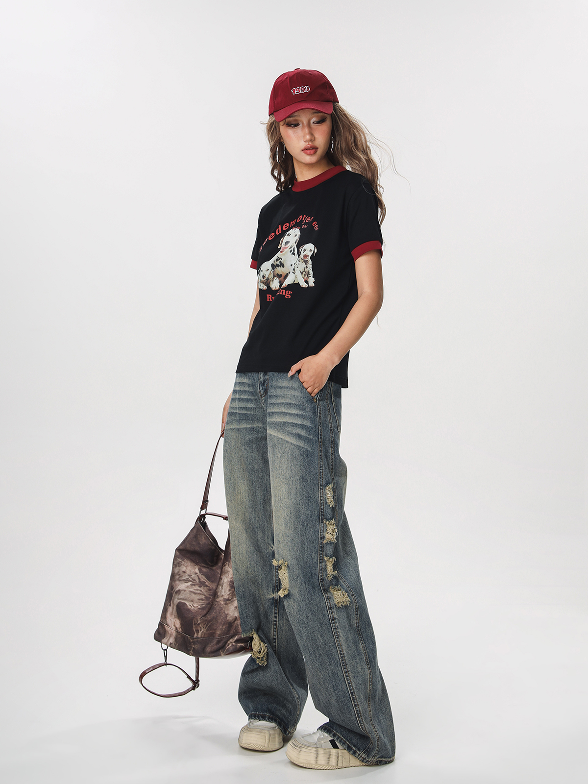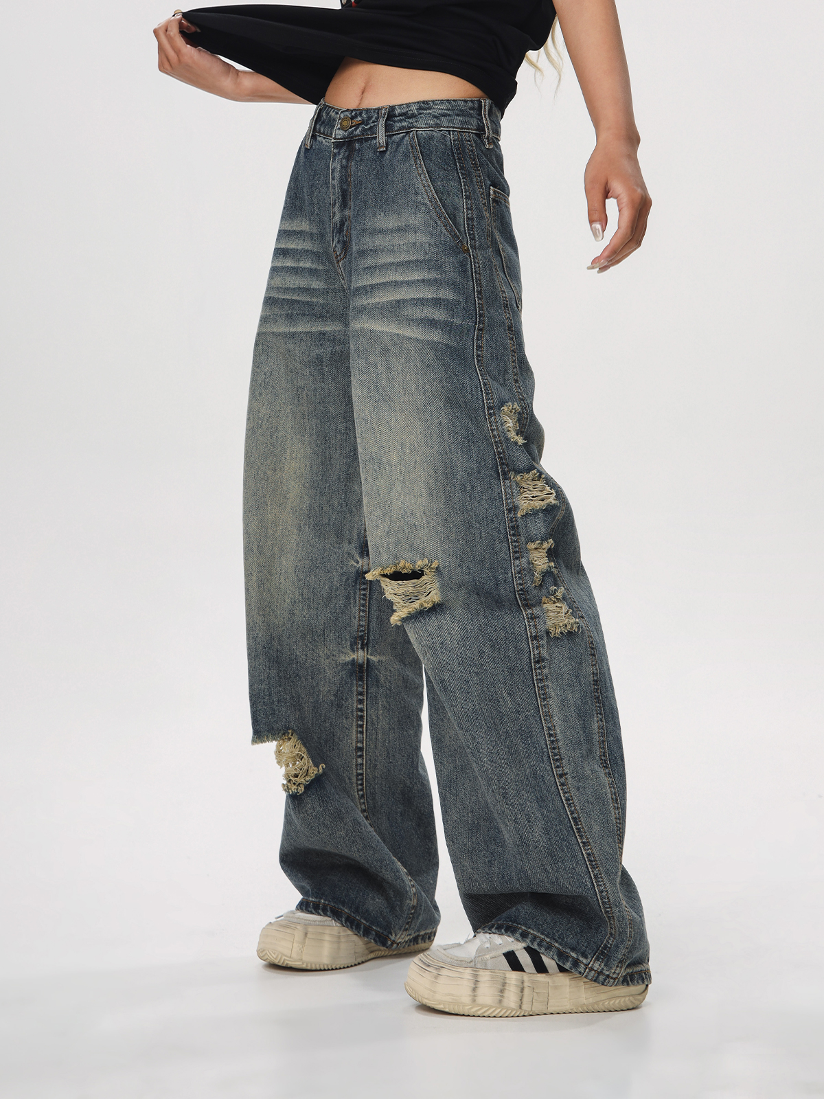 Step into effortless style with our Vintage Distressed Ripped Jeans for Women, featuring a loose straight leg and flared silhouette that embodies the laid-back charm of 90s American fashion. Crafted for comfort and breathability, these jeans offer a relaxed fit that flatters every body type while showcasing trendy ripped details for a touch of edginess. Perfect for casual outings or relaxed weekends, these versatile pants can be easily paired with your favorite tees or sweaters. Don’t miss out on this timeless wardrobe staple—add to your cart today!