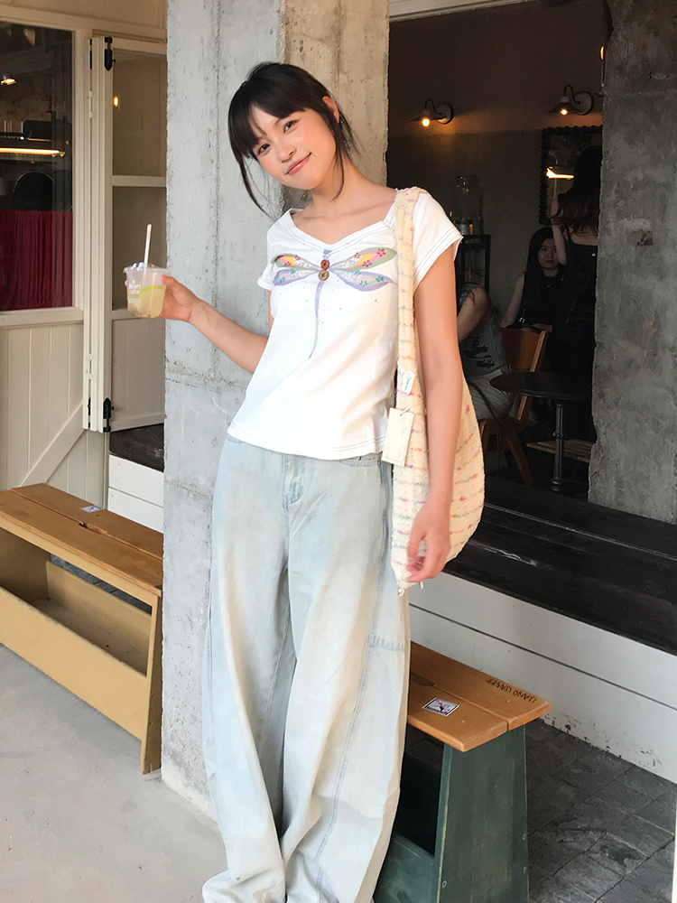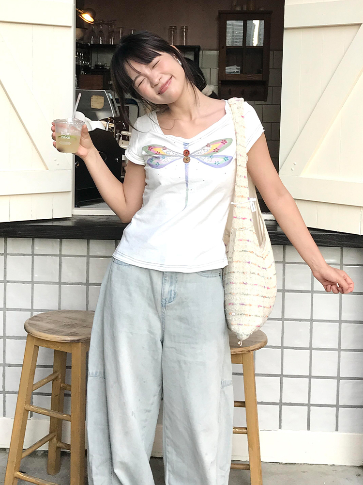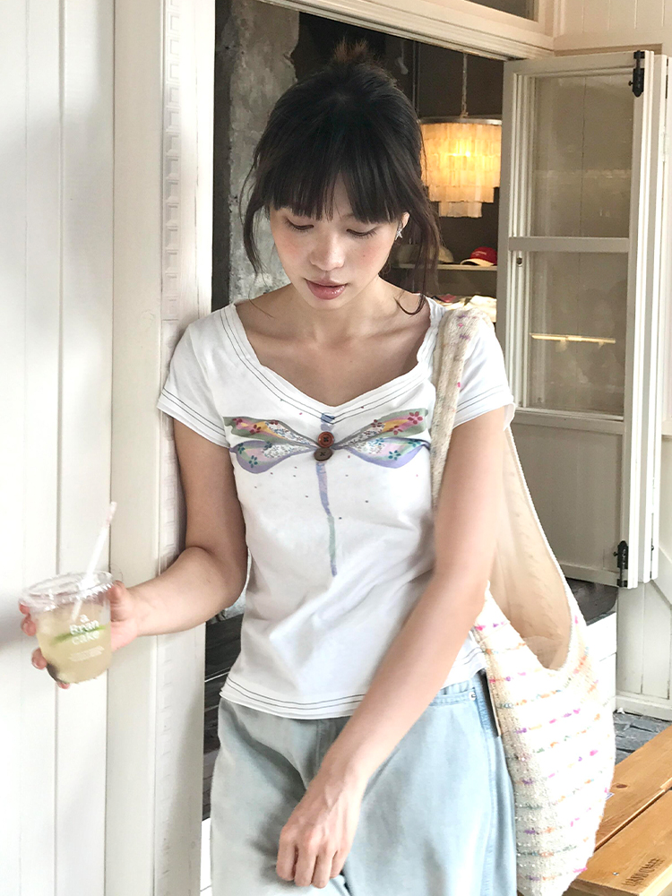 Concert Outfit Vintage H Painted Print V- Neck Cropped T- shirt Women Short Sleeve Slim Fit Summer Top