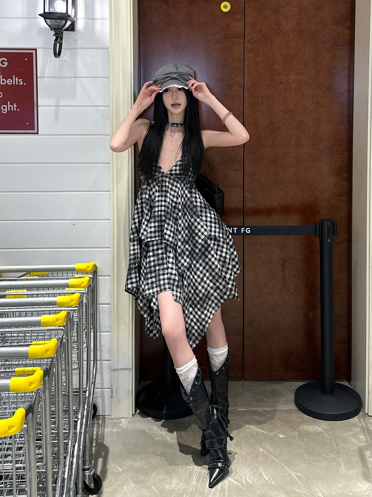 Concert Outfit Vintage Double Layer Plaid Camisole Dress Women Y2K pired Layered