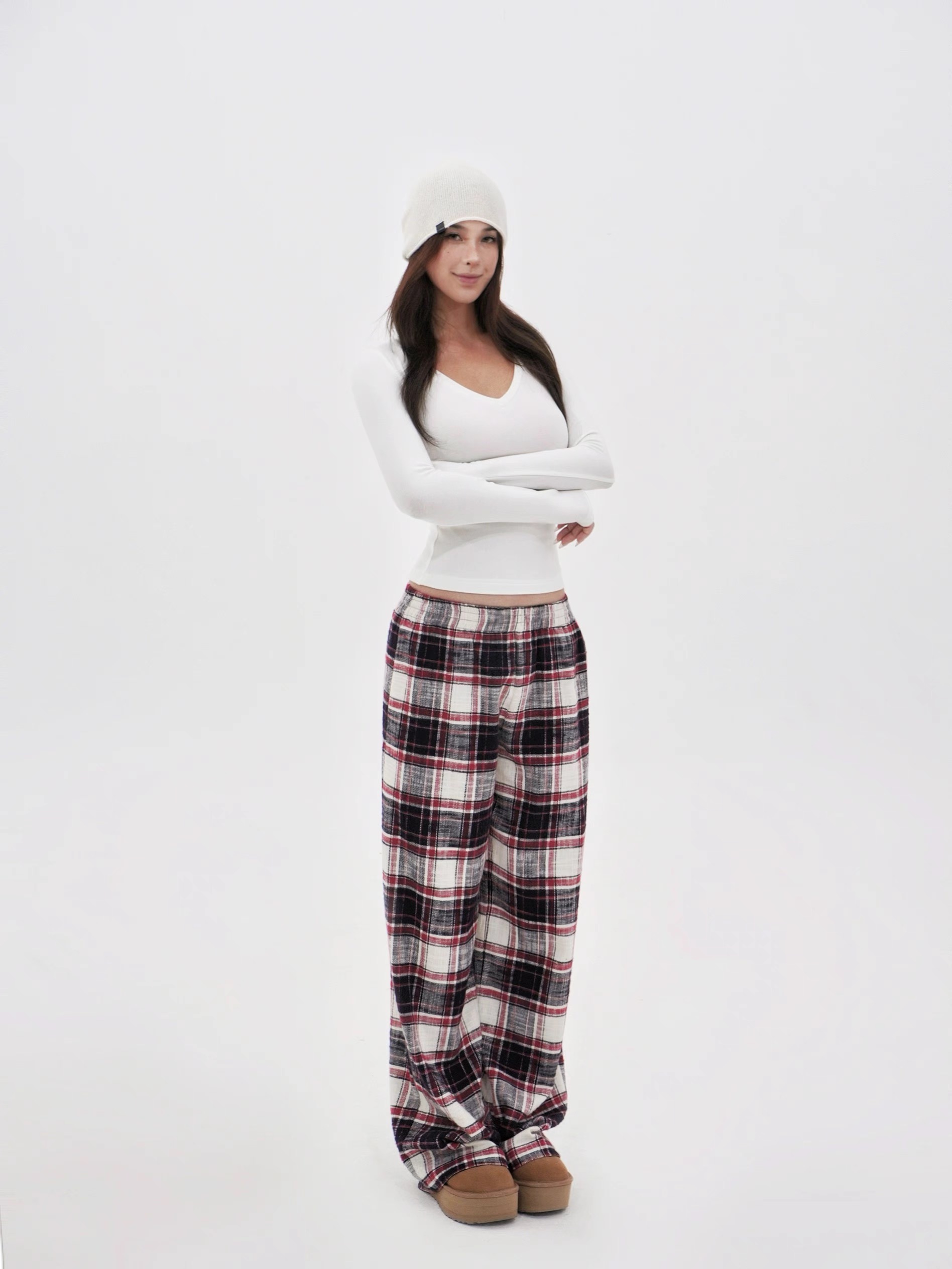 Step into comfort and style with our Vintage Red Plaid Low Waist Pure Cotton Brushed Floor-Length Lounge Pants. Inspired by the effortless fashion of the 90s, these pants feature a relaxed fit that drapes beautifully, making them perfect for lounging at home or stepping out in style. Crafted from soft, breathable cotton, they offer all-day comfort while the bold plaid pattern adds a trendy touch to your wardrobe. Elevate your casual look and embrace the vintage vibe—add these must-have lounge pants to your cart today!