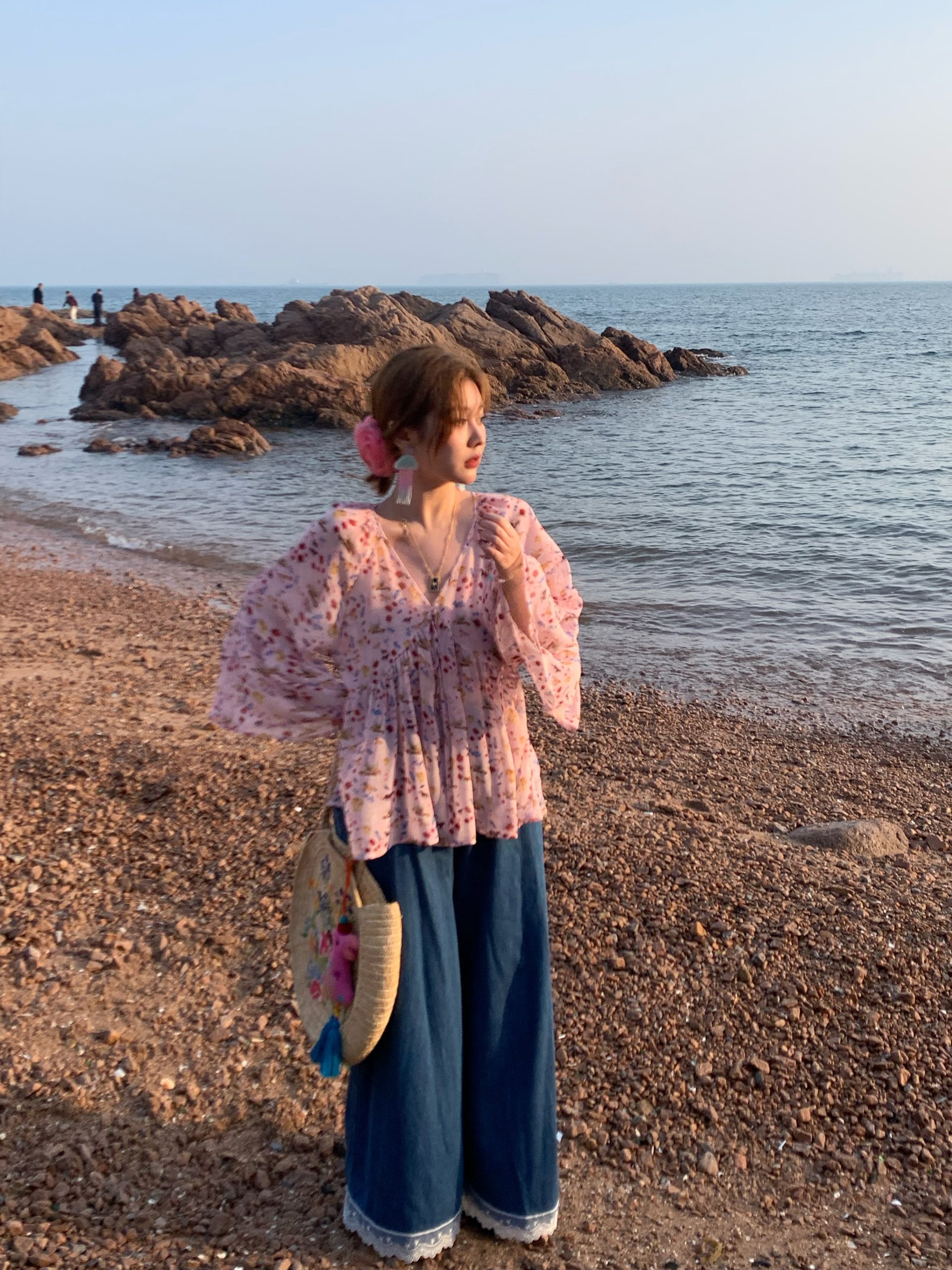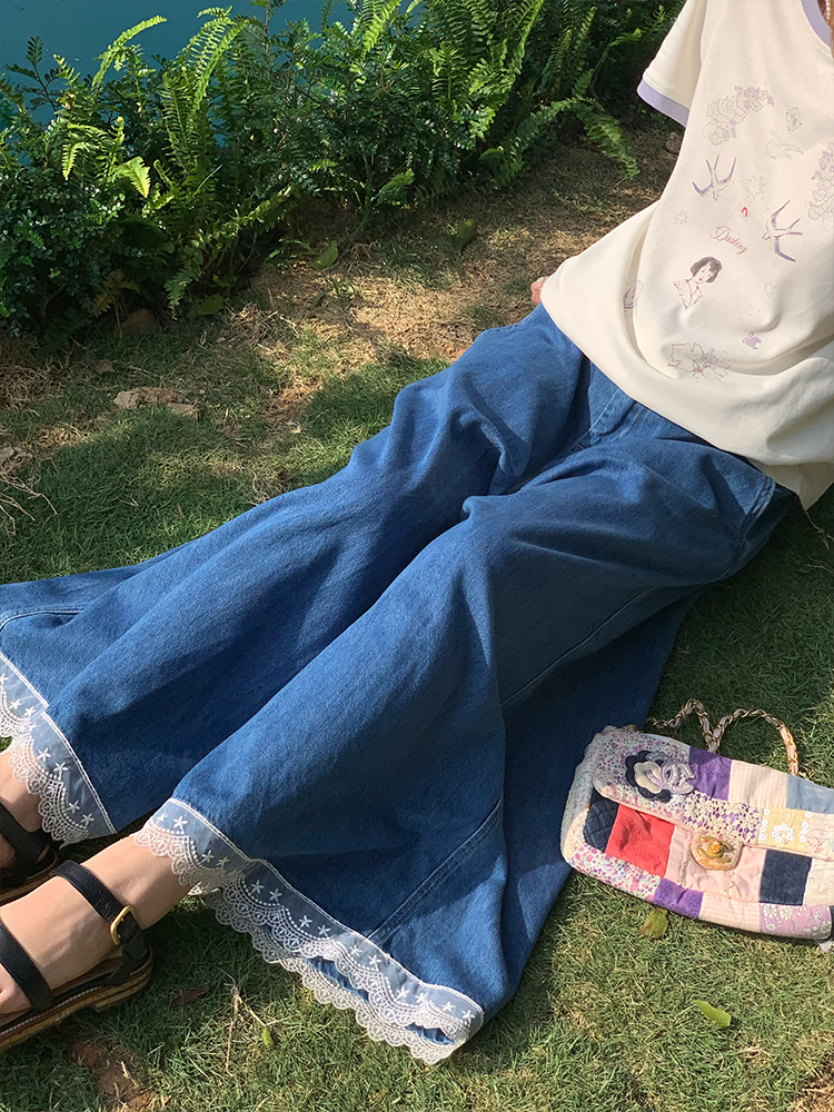 Concert Outfit Vintage Retro Lace Trim High Waisted Denim Pants Women Summer Loose Wide Leg, pired