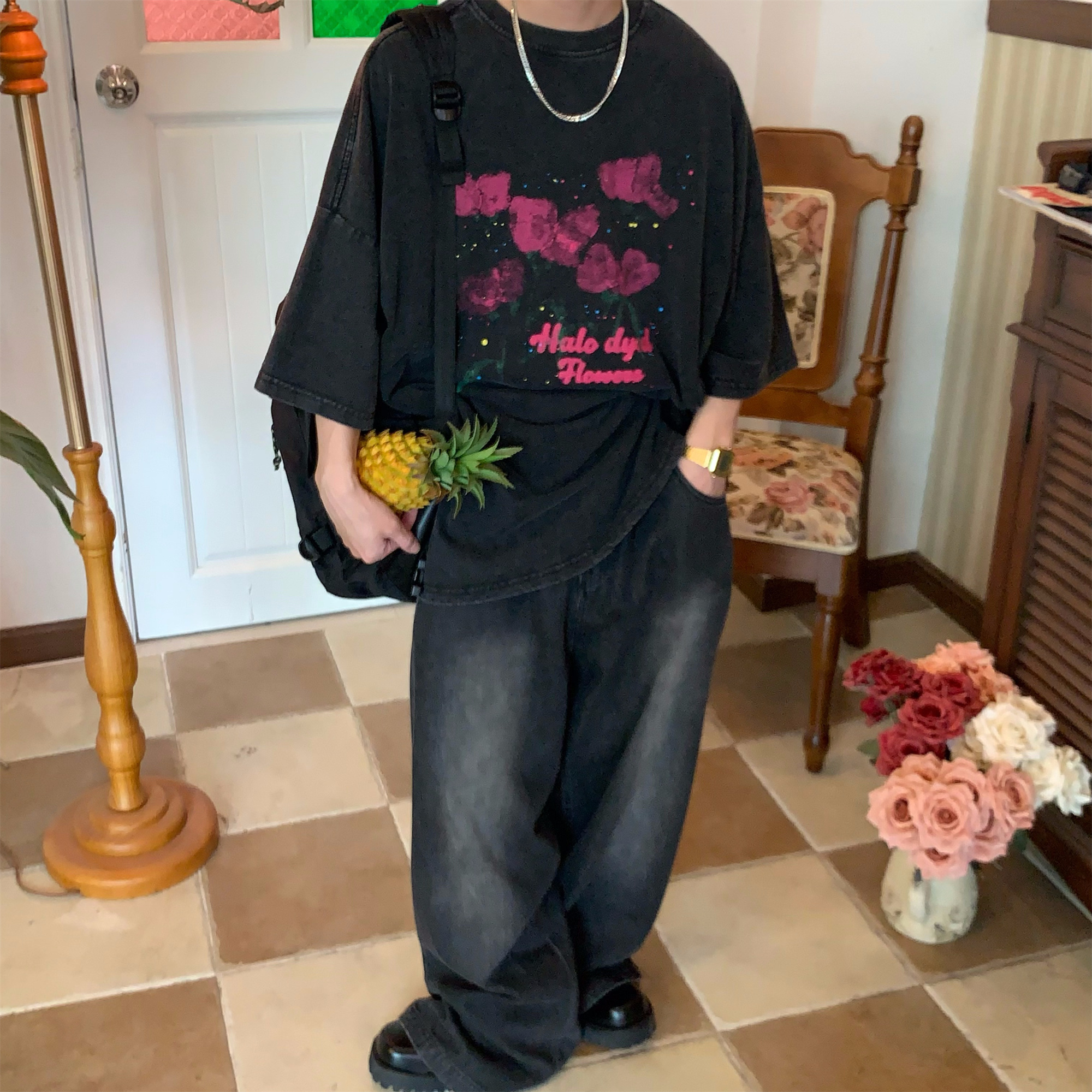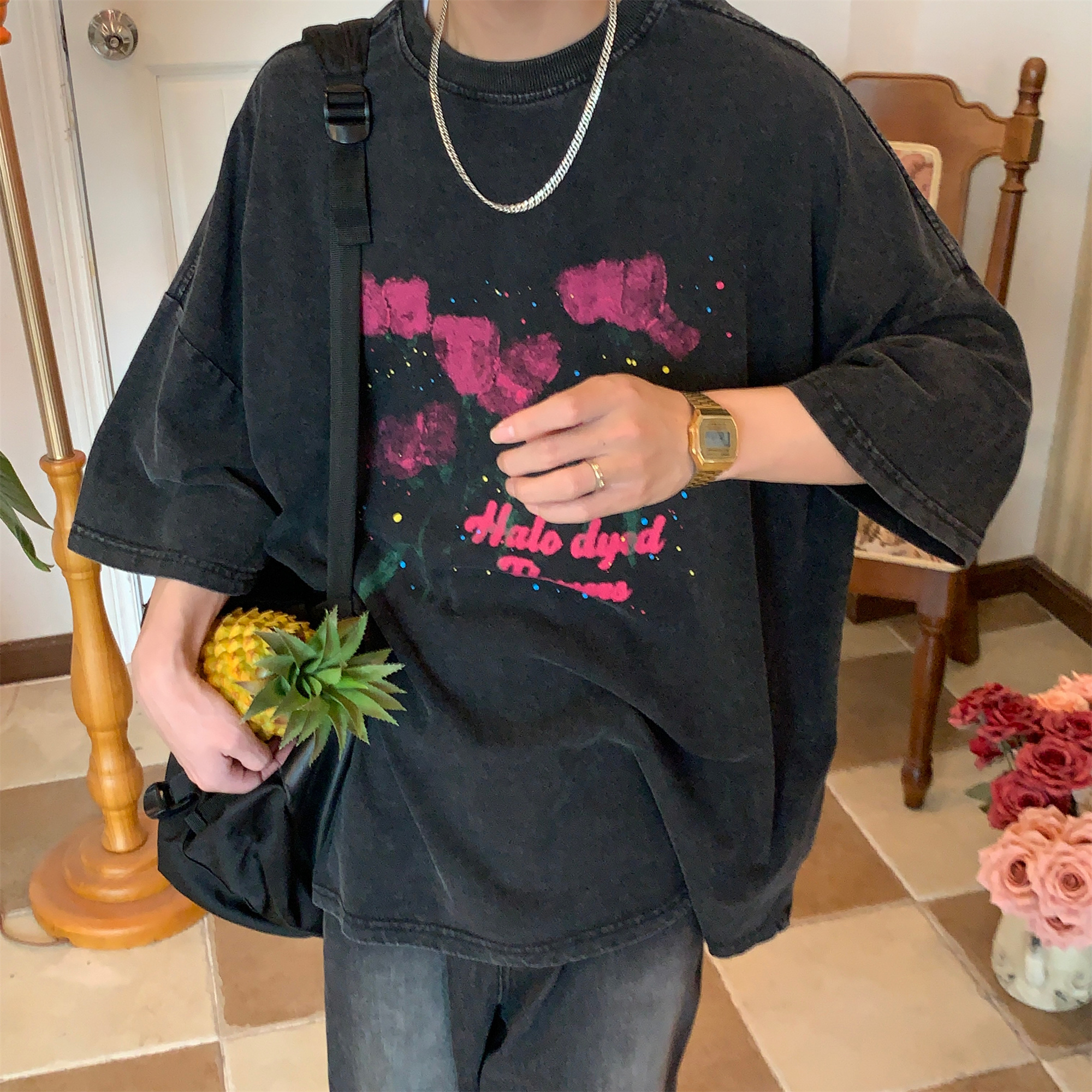 Concert Outfit Vintage Wash Dream Print Short Sleeve T- shirt Couples Unisex Summer Tee, Y2K Top
