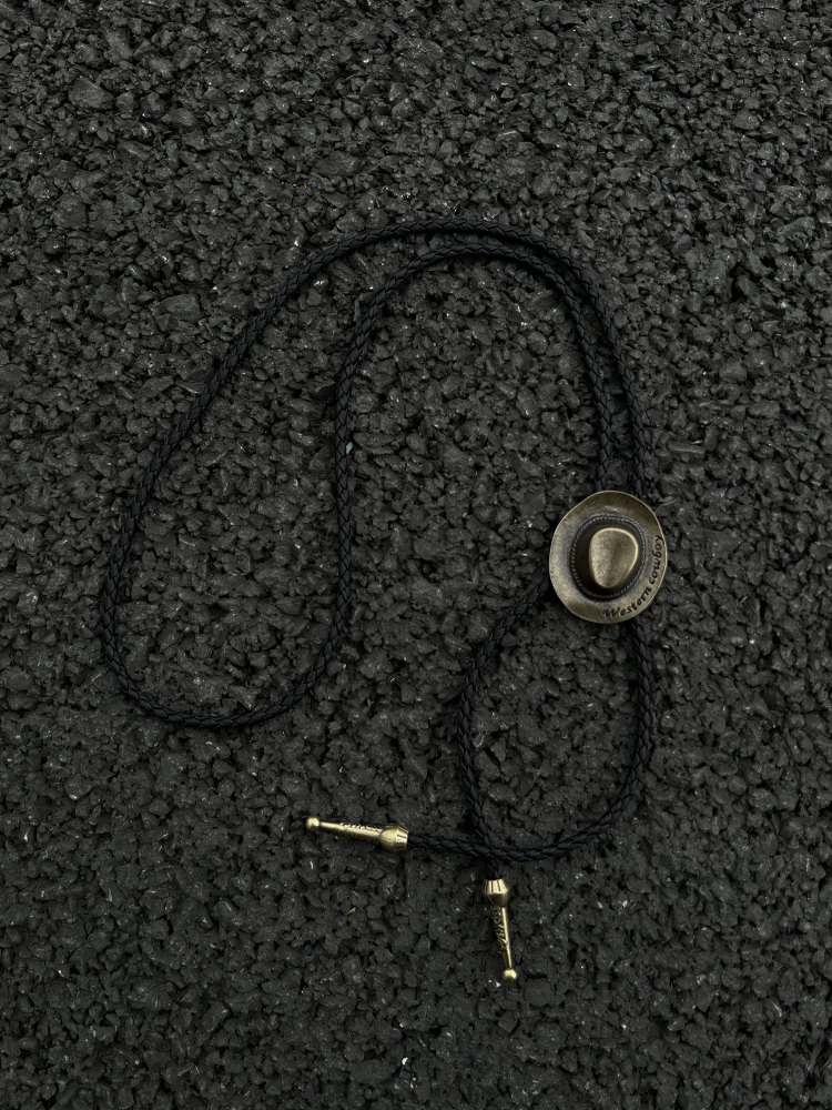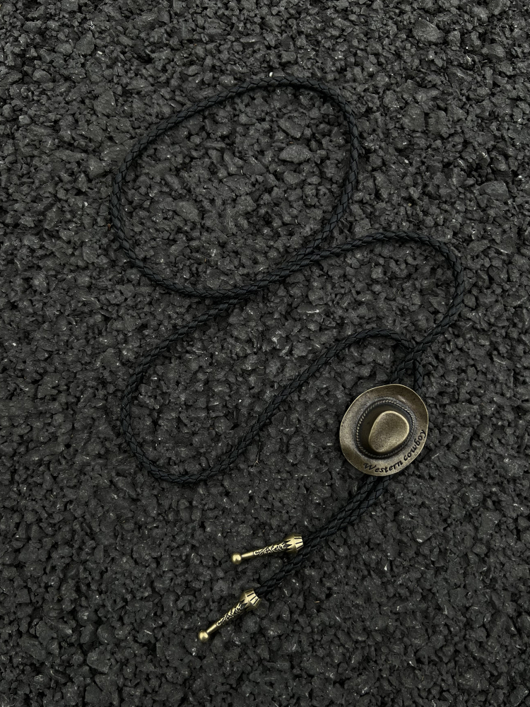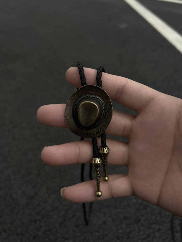 Concert Outfit Vintage Cowboy Polo Collar Necklace Unisex Pendant Leather Rope Tie Y2K