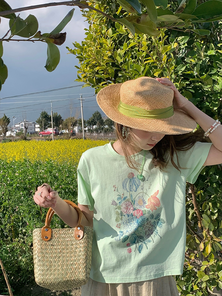 Concert Outfit White Short Sleeve Floral Oil Painting T- shirt Women, Summer Pure Cotton, Loose Fit, Neck, Vintage Top High-quality product featuring summer fits, concert outfit ideas, spring outfit and more. Modern design that fits the latest trends. Premium materials ensure durability and comfort. Order now for special offers! Product designed with attention to every detail. Suitable for all occasions and personal styles.