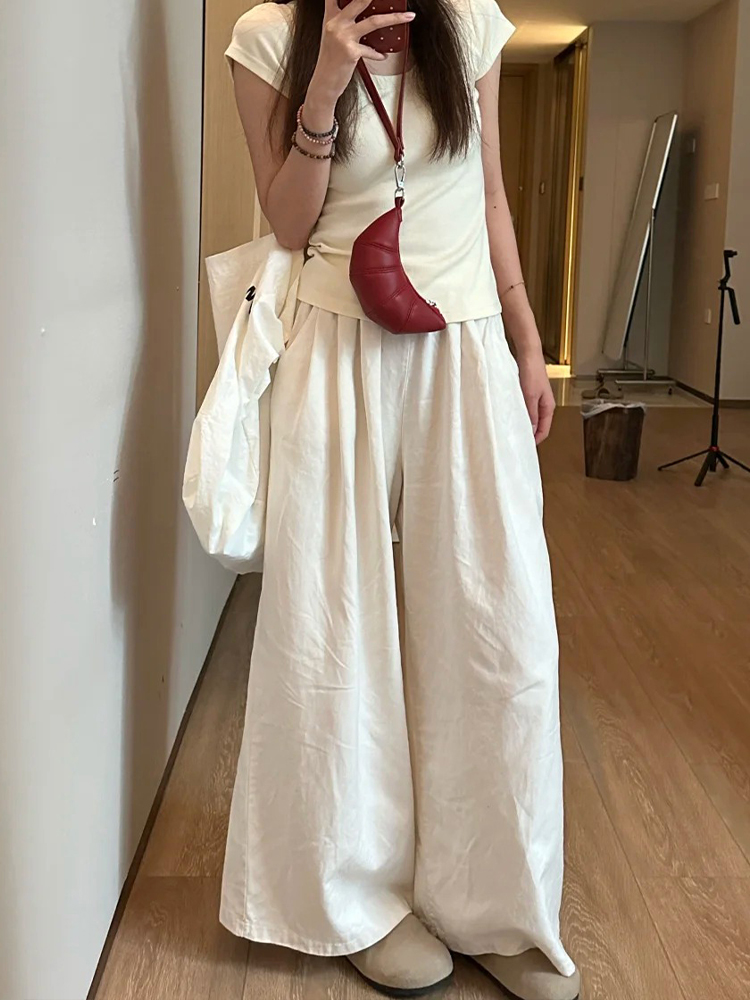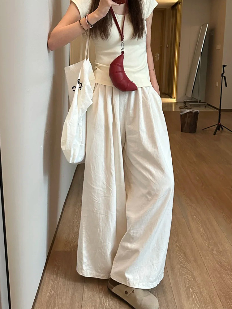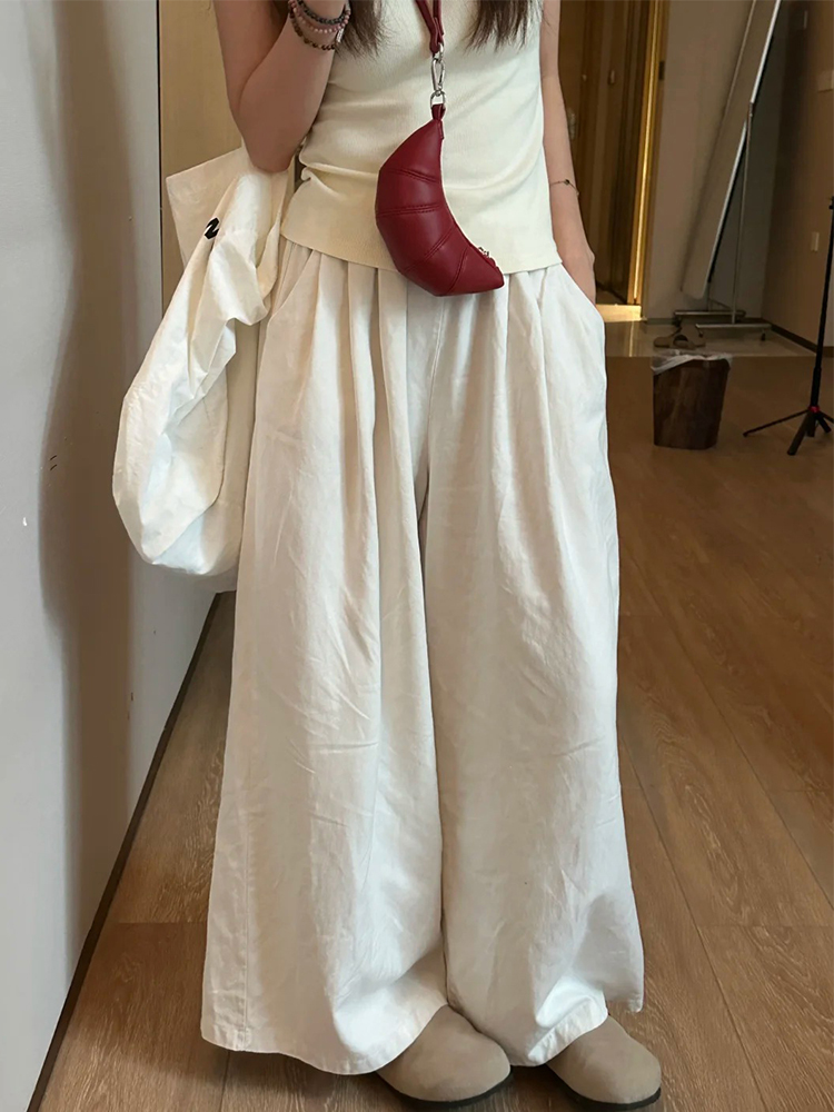 Elevate your summer wardrobe with our White Wide-Leg Pants for Women, designed for a relaxed fit that exudes effortless style. These loose-fit trousers are perfect for casual outings, offering a chic Korean-inspired silhouette that complements any top. Crafted for comfort and breathability, they’re ideal for those warm days when you want to feel both stylish and at ease. Don’t miss out on this essential fashion piece—add to your cart today and step out in confidence!