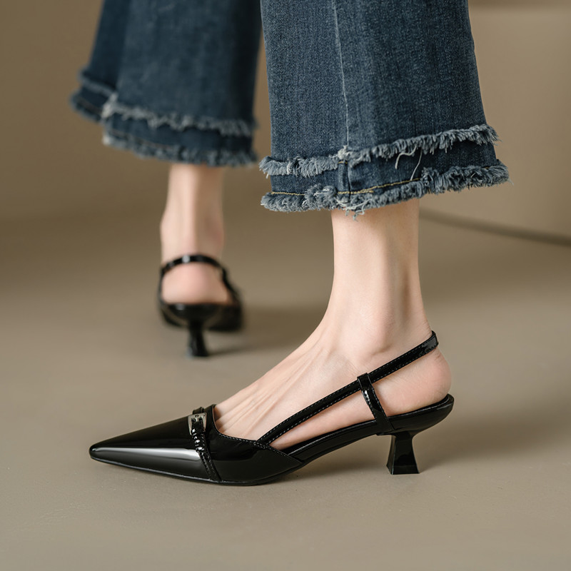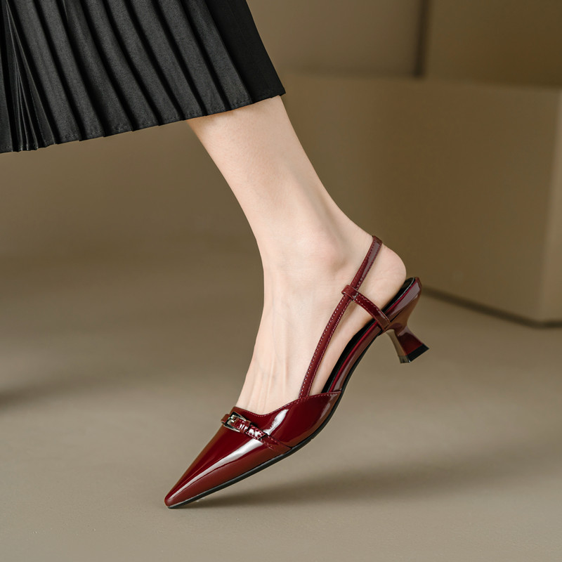 Step into elegance with our Wine Red Patent Leather Cat Heel Sandals, featuring a vintage closed toe and chic pointed toe design. These Italian-style low heels offer a perfect fit for any occasion, blending comfort with sophisticated flair. Elevate your wardrobe and make a stylish statement effortlessly. Don’t miss out on these must-have sandals—add them to your cart today!