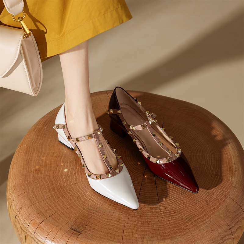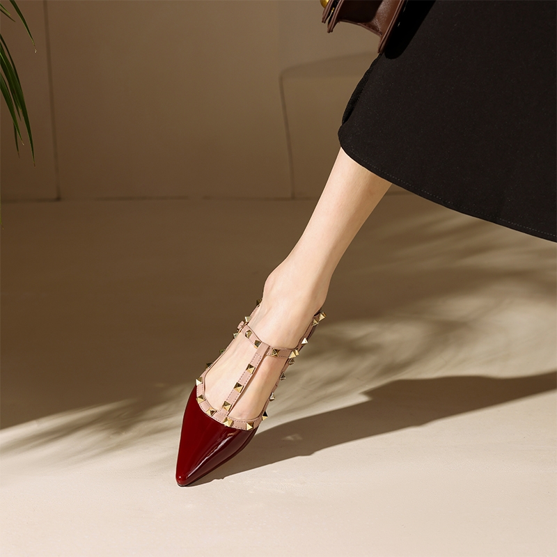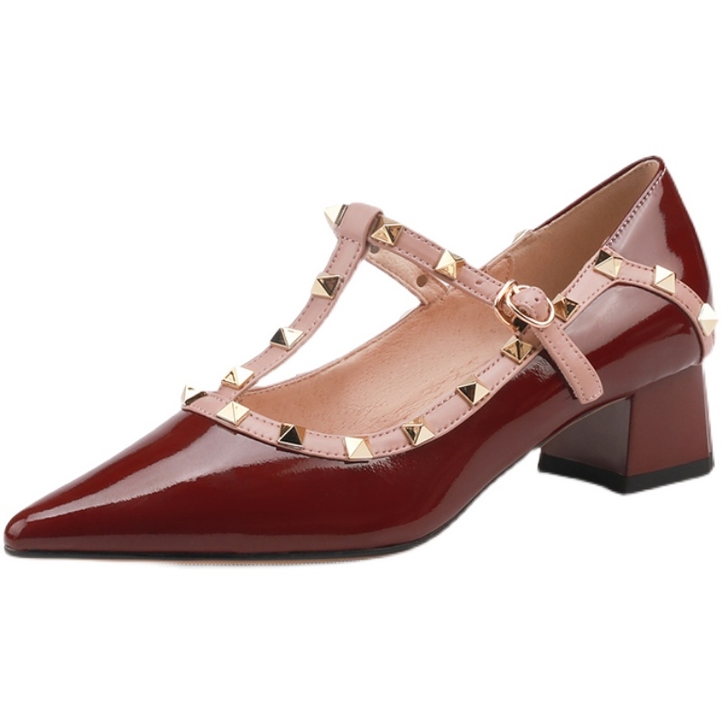 Step into a world of vintage charm with our Wine Red Patent Leather Studded Pointed Toe Lolita Mid-Heel Shoes. These Y2K inspired beauties feature a sleek pointed toe and stylish studs that elevate any outfit, from casual to chic. With a comfortable mid-heel and a striking wine red finish, these shoes are perfect for a night out or a day filled with adventure. Don’t miss out on this must-have addition to your wardrobe—add to your cart now and embrace your fashionable side!