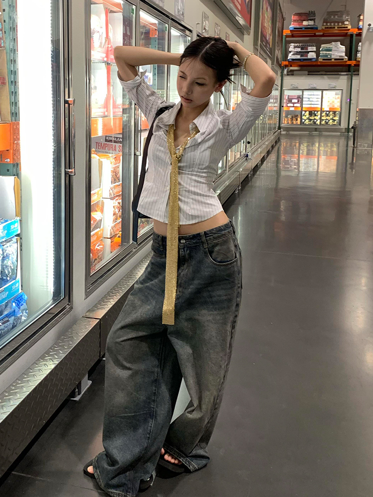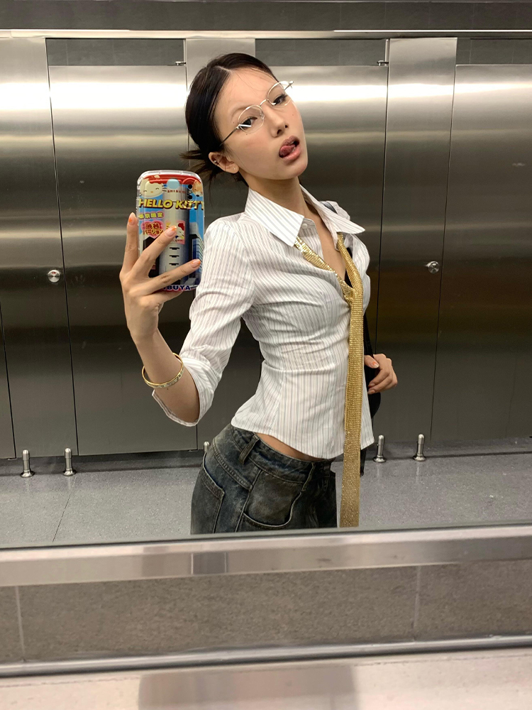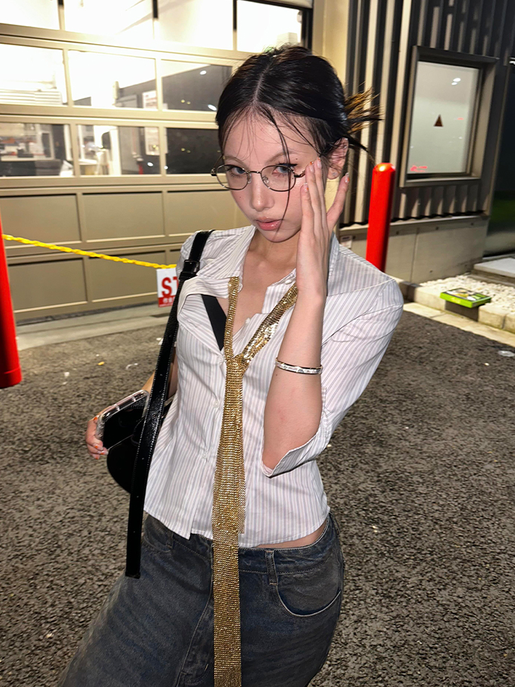 Concert Outfit Women Striped Mid Sleeve Lapel Shirt Jacket Slim Fit Spring Top
