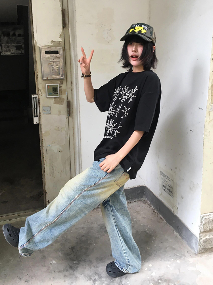 Elevate your summer wardrobe with our Women’s American Style Heavy T-Shirt featuring a vibrant sunflower print. This versatile black short sleeve top offers a relaxed, loose fit that ensures all-day comfort while effortlessly complementing any casual outfit. Crafted from high-quality materials, it’s perfect for sunny days out or lounging at home. Don’t miss out on this essential addition to your collection—add it to your cart now and embrace your stylish side!