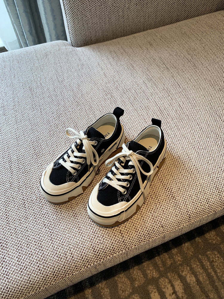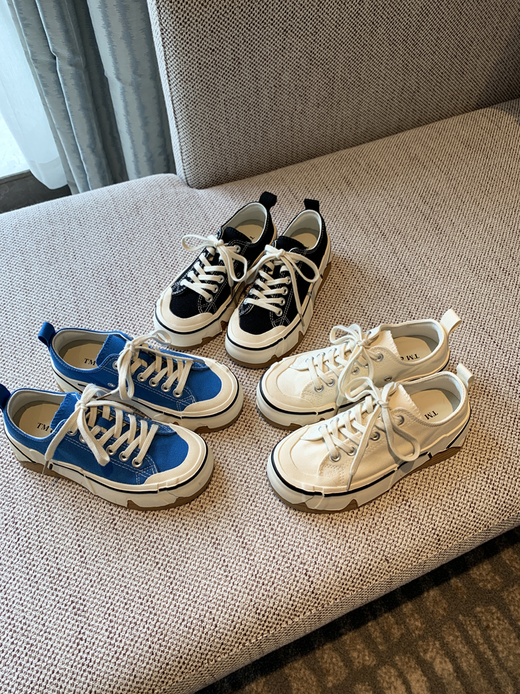 Step into spring with our Women’s Canvas Lace-Up Sneakers, designed for the modern woman who values both style and comfort. Featuring a trendy thick sole and a low-top silhouette, these casual shoes effortlessly blend Korean-inspired fashion with everyday versatility. The breathable canvas upper ensures a perfect fit, making them ideal for all-day wear, whether you’re running errands or meeting friends. Don’t miss out on these must-have sneakers—add to your cart today!