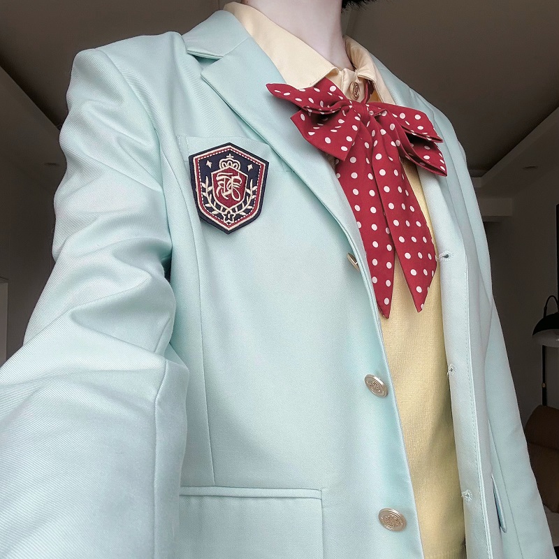 | Color | Blue striped handmade tie, Deep orange-red handmade tie, Three-button black suit + detachable badge, Three-button dark blue suit + detachable badge, Three-button mint green suit + detachable badge, Two-button black suit + detachable badge, Two-button dark blue suit + detachable badge |