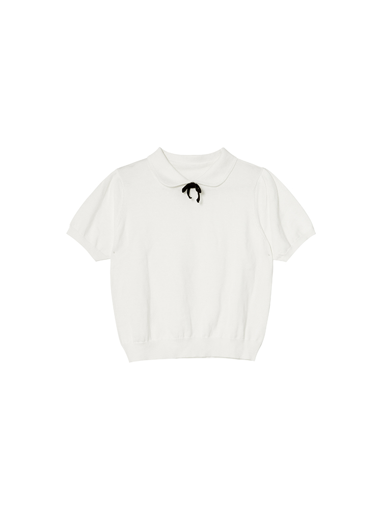 Concert Outfit Women Doll Collar Bow Short Sleeve Knitted Top Loose Fit Spring/Summer, Cute, Simple