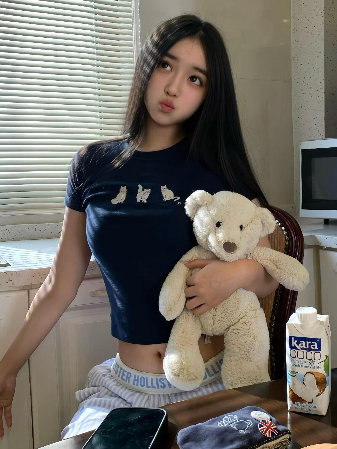 Concert Outfit Women Fitted Slim Pure Cotton High Stretch T- shirt Cute Cat Cartoon Korean Short Sleeve High-quality product featuring concert outfit ideas, country concert outfit, pretty outfits and more. Modern design that fits the latest trends. Premium materials ensure durability and comfort. Order now for special offers! Product designed with attention to every detail. Suitable for all occasions and personal styles.