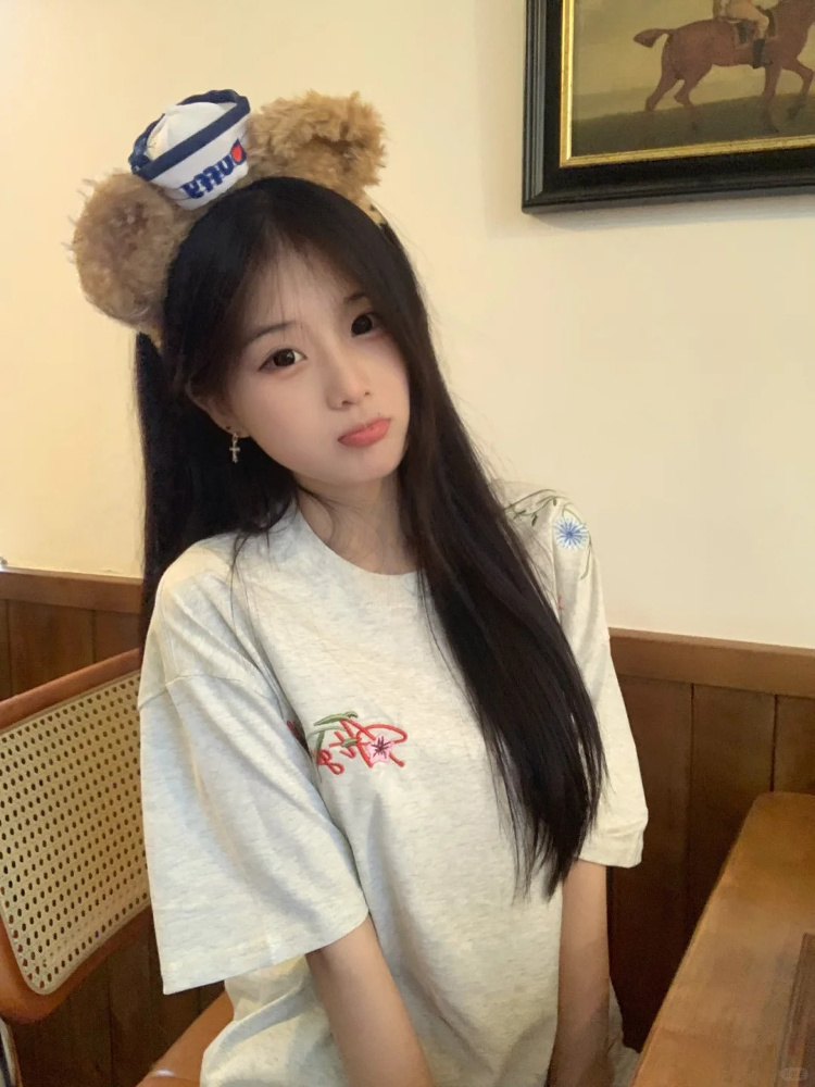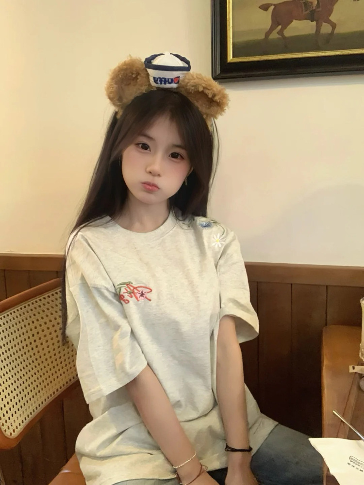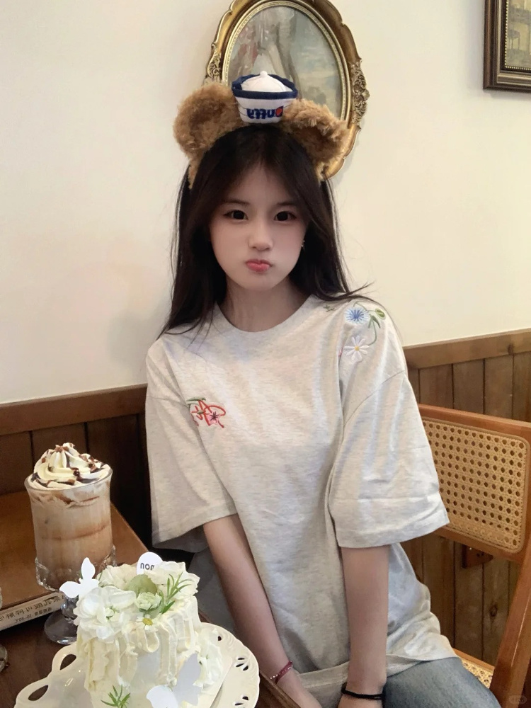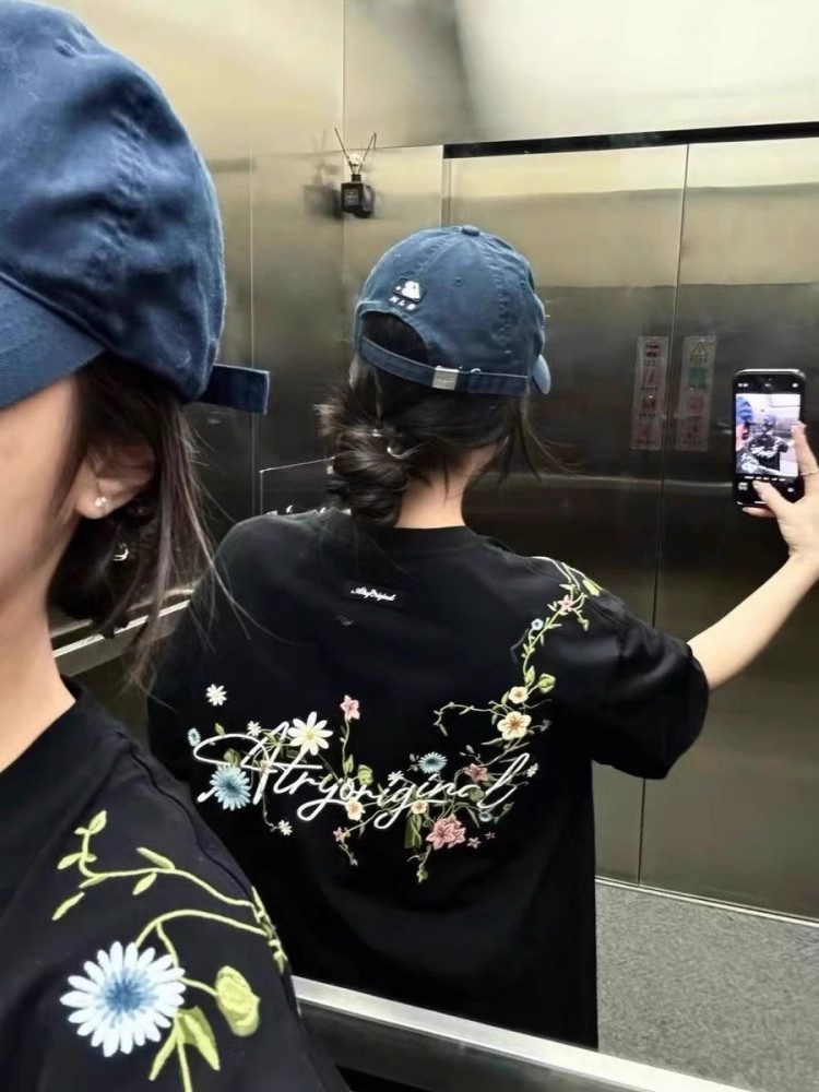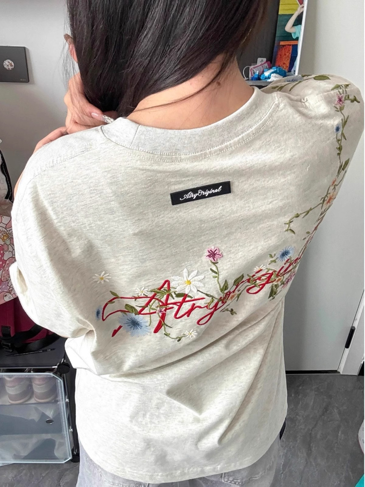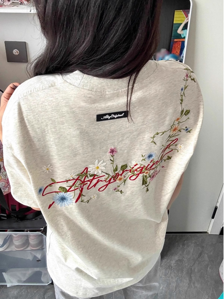Stylish Gray Floral Embroidered T-shirt: Perfect Concert Outfit for Summer