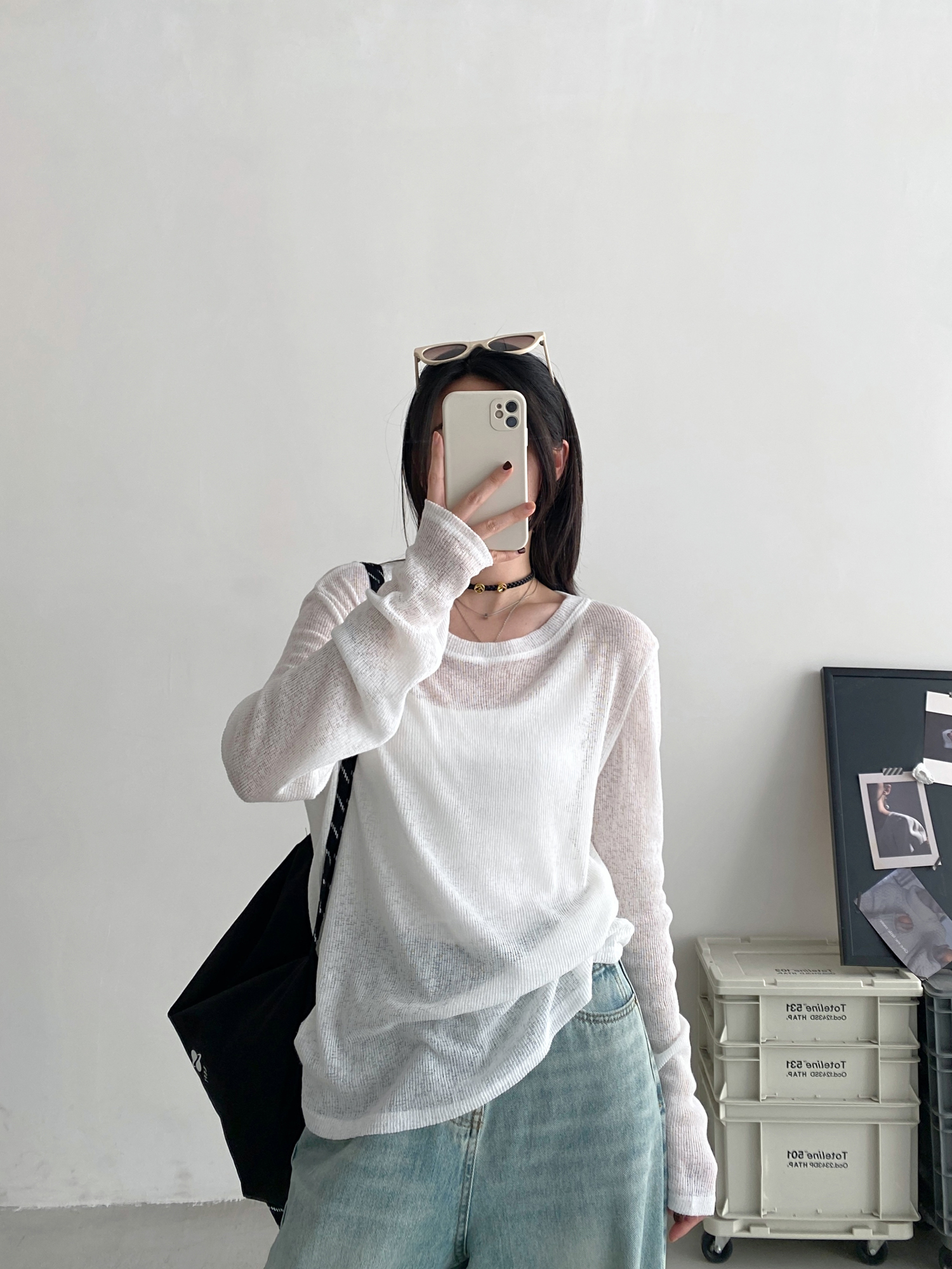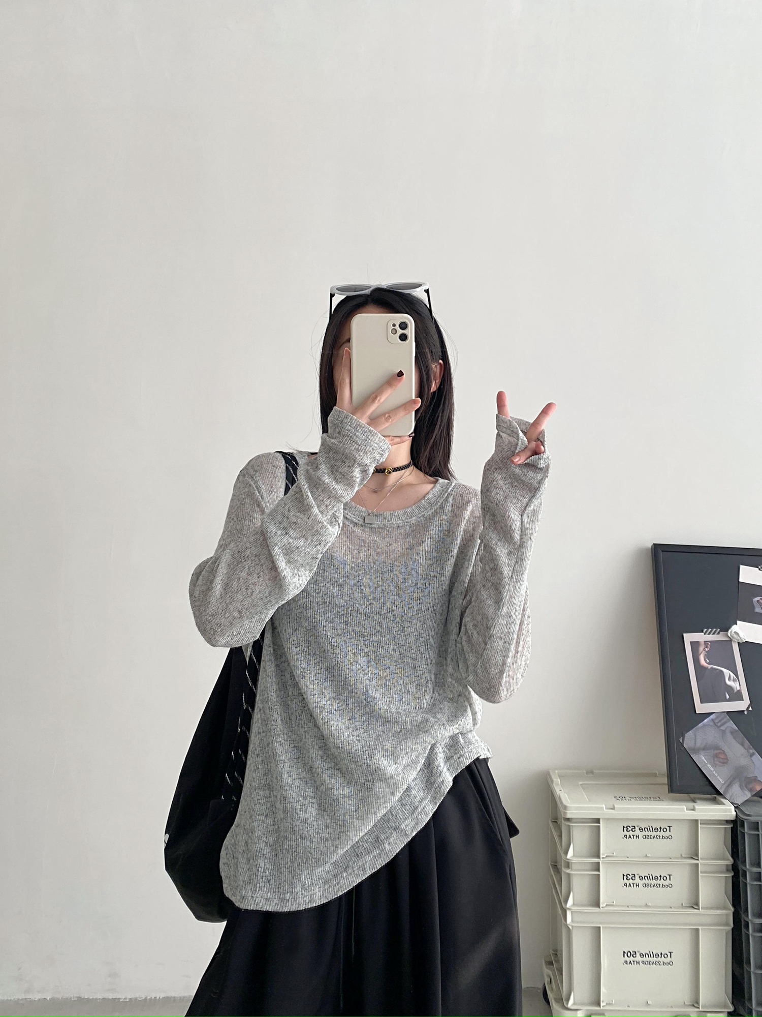 Elevate your summer wardrobe with our Women’s Gray Semi-Transparent Round Neck Sun Protection T-Shirt, designed for both style and comfort. This loose-fit, long sleeve knitted top offers a chic Korean style while providing essential sun protection, making it perfect for sunny days out. The semi-transparent fabric adds a trendy touch, allowing you to effortlessly layer it over your favorite tank or bikini. Don’t miss out on this versatile piece—add it to your cart today and step out in style!