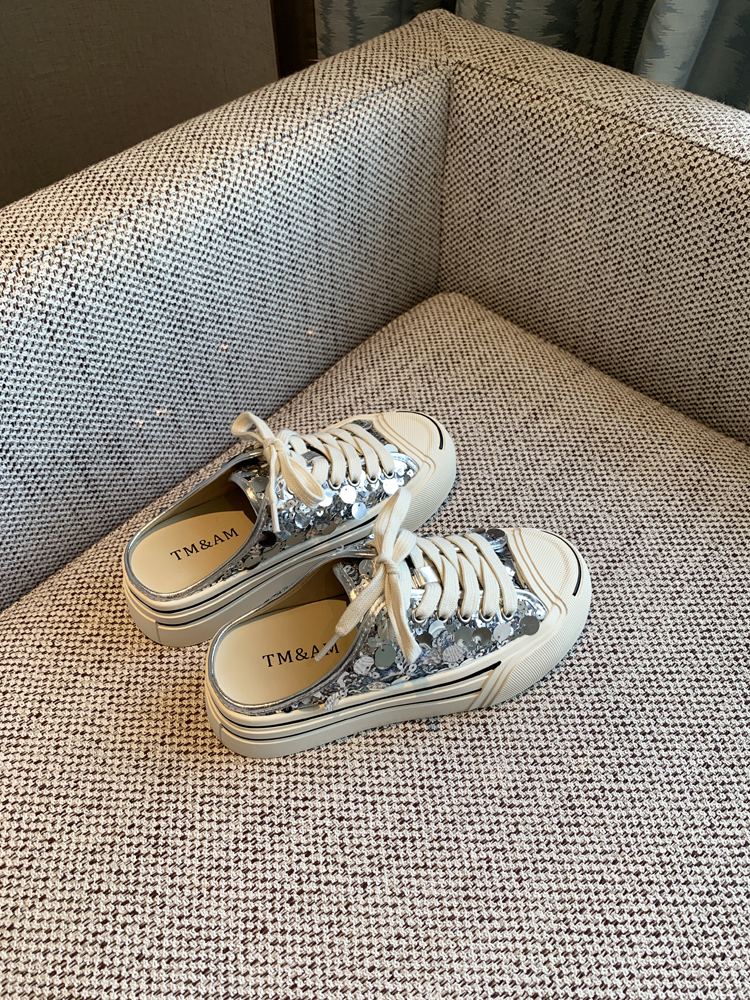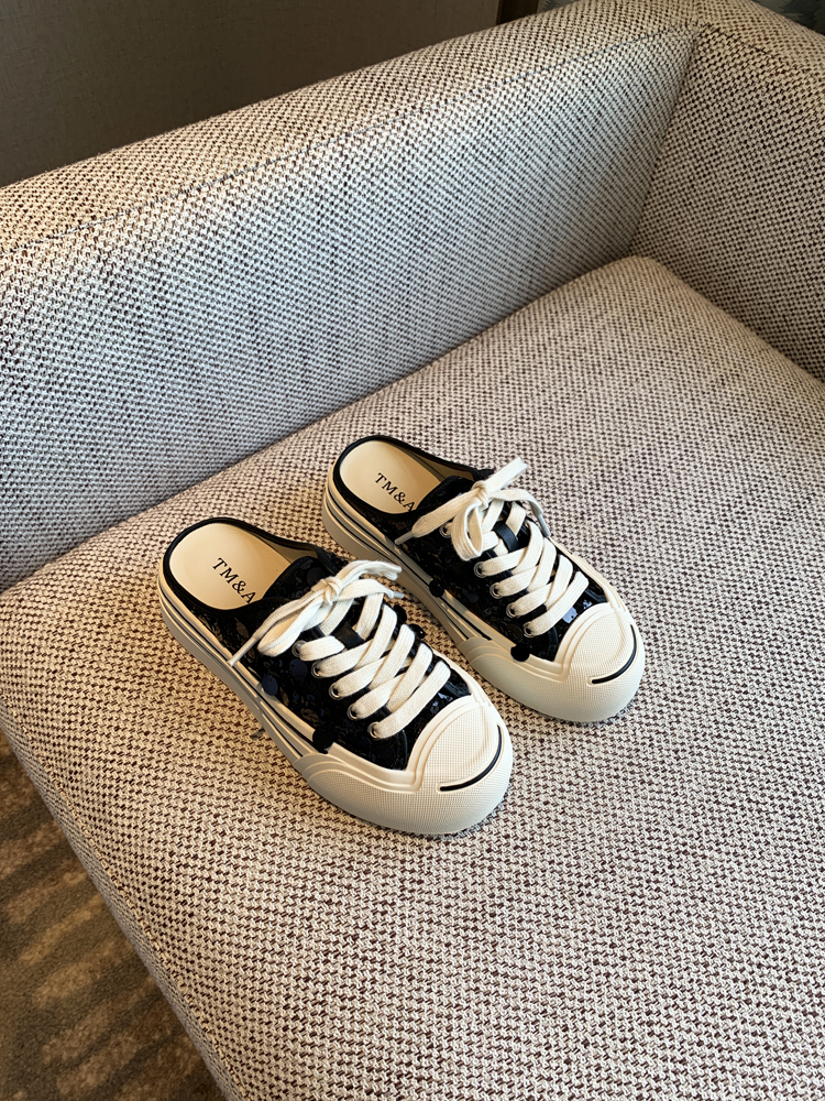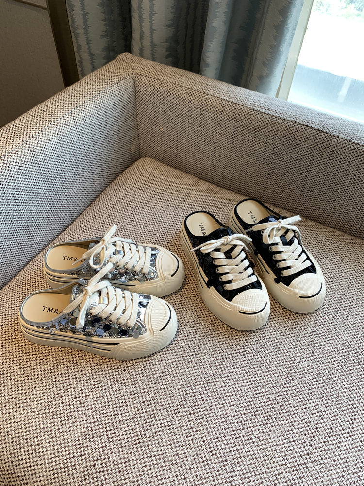Step into effortless style with our Women’s Lace-Up Sequined Baotou Slippers, the must-have footwear for 2025. Featuring a chic thick sole and a dazzling sequined design, these casual little white half-drags combine comfort and versatility, making them perfect for any occasion. With a secure lace-up fit and a trendy silhouette, elevate your wardrobe and shine bright wherever you go. Add to your cart today and embrace the perfect blend of fashion and function!