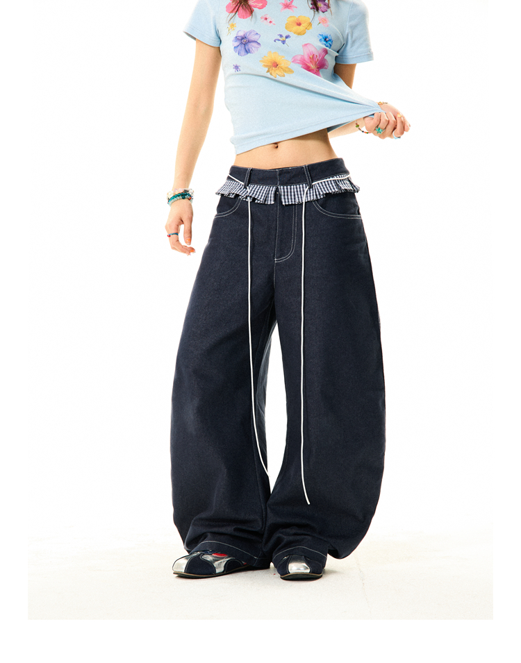 Elevate your wardrobe with our Women’s Loose Wide-Leg Patchwork Plaid Ruffled Edge Curved Blade Jeans, the perfect blend of casual comfort and modern style. Featuring a unique patchwork design and ruffled edges, these jeans offer a flattering wide-leg fit that moves with you, making them ideal for any occasion. Embrace your American style fashion sense and enjoy the versatility and comfort these jeans provide. Don’t miss out on this must-have addition to your collection—add to your cart today!